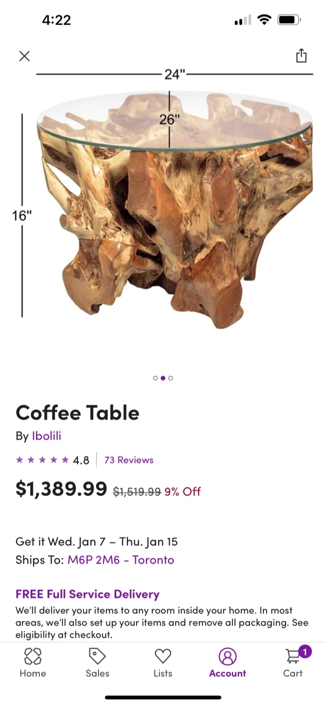 Brand NEW Unique coffee table with a glass top and a distinctive wood base! It's a real statement piece.