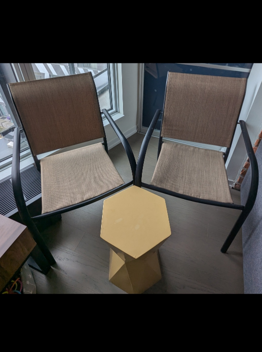 1 / 11 / 1Buy & SellPair of Outdoor Patio Chairs with Side TablePair of Outdoor Patio Chairs with Side Table$45Two brown sling patio chairs. Metal frame. Beige cushions. Included hexagon side table.WHERE TO MEETCollege & LansdowneView MapSELLERevaDufferin Grove493 reviews2 chats·1 favorites·210 viewsSEND CHAT TO SELLERHi eva! I’m interested in your listing.Hi eva! I’m interested in your listing.Get the Karrot app to chatSign In to chat