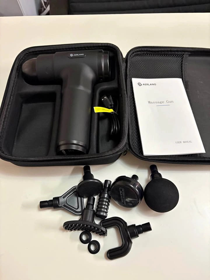 15Moving Sale!! AERLANG percussion massage gun in excellent condition — used only a few times. Includes: • Massage gun • 6 interchangeable heads • USB-C charging cable • User manual • Hard shell carrying case ✅ Adjustable speed levels(up to 20) ✅ Long battery life ✅ Quiet operation ✅ Great for muscle recovery, tension relief & post-workout relaxation Clean and fully functional. Retail: $95 CAD new Pickup in Queensborough, New Westminster.