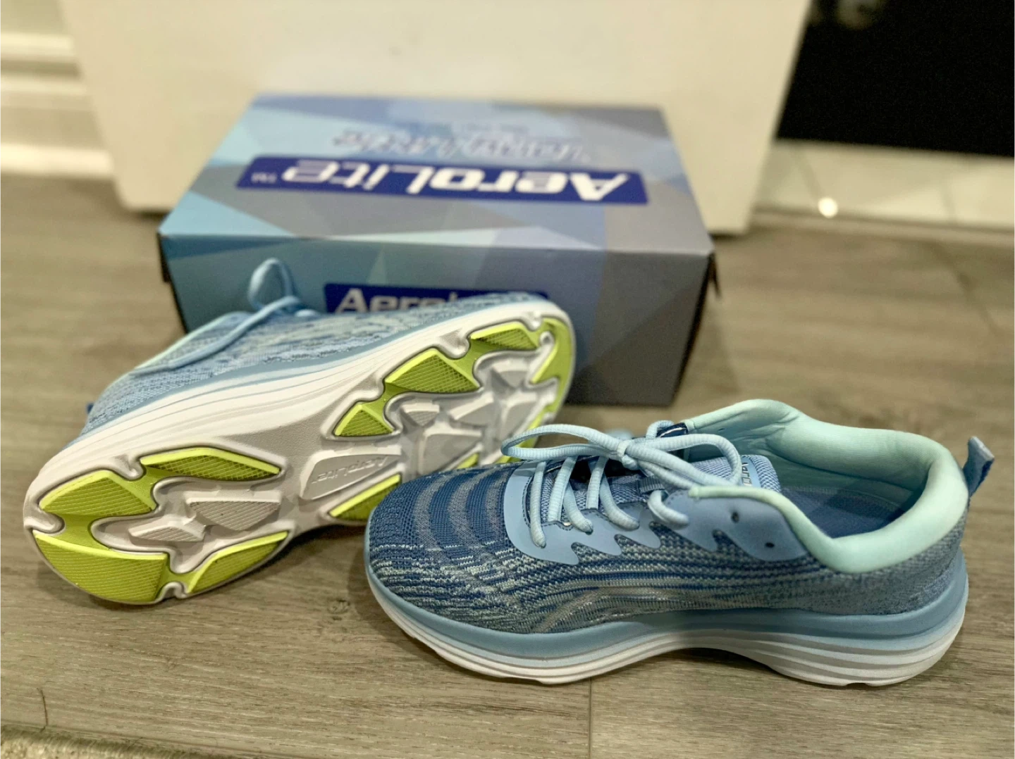 10Selling a pair of Aerolite running shoes in a lovely shade of blue! They come with the original box. These shoes look great and are ready for a new home. Perfect for light jogs or everyday wear! For women brand new, never been used