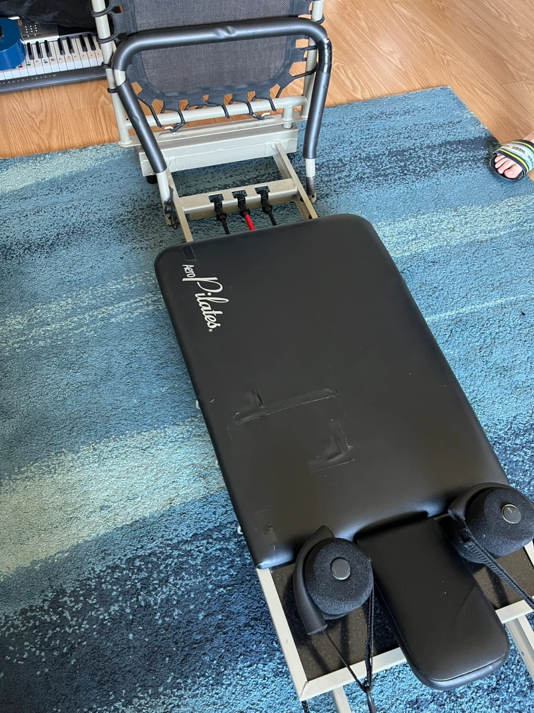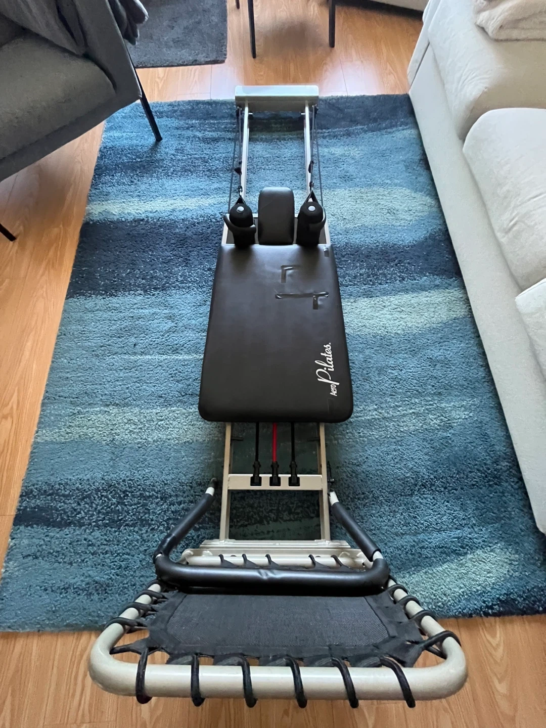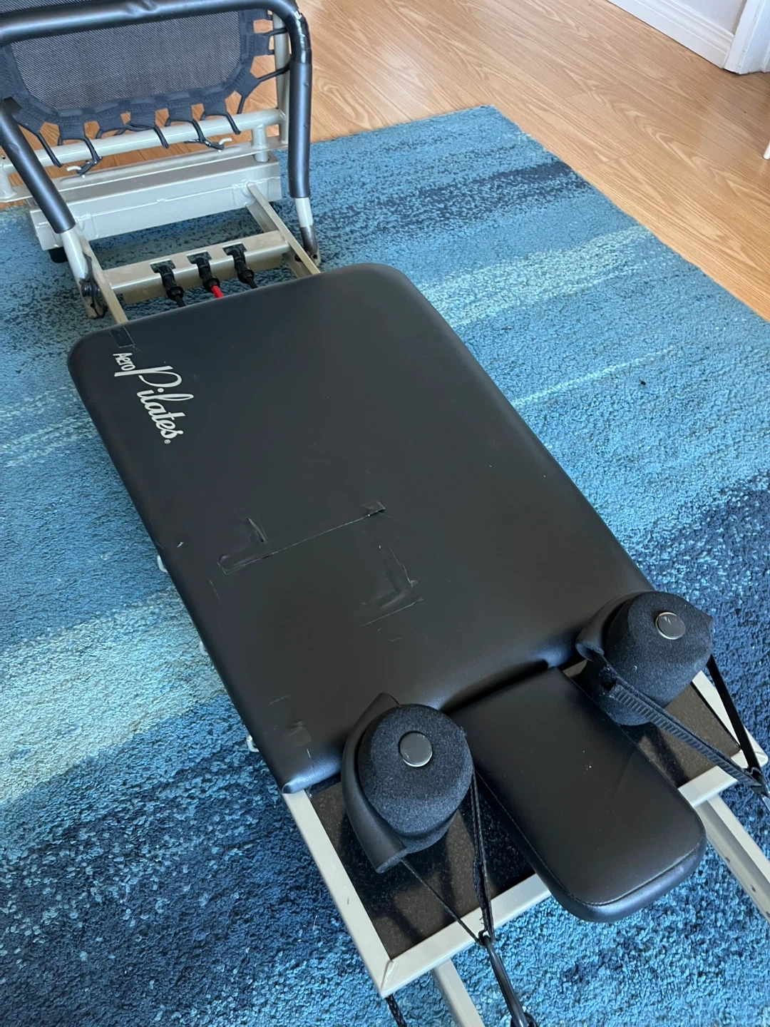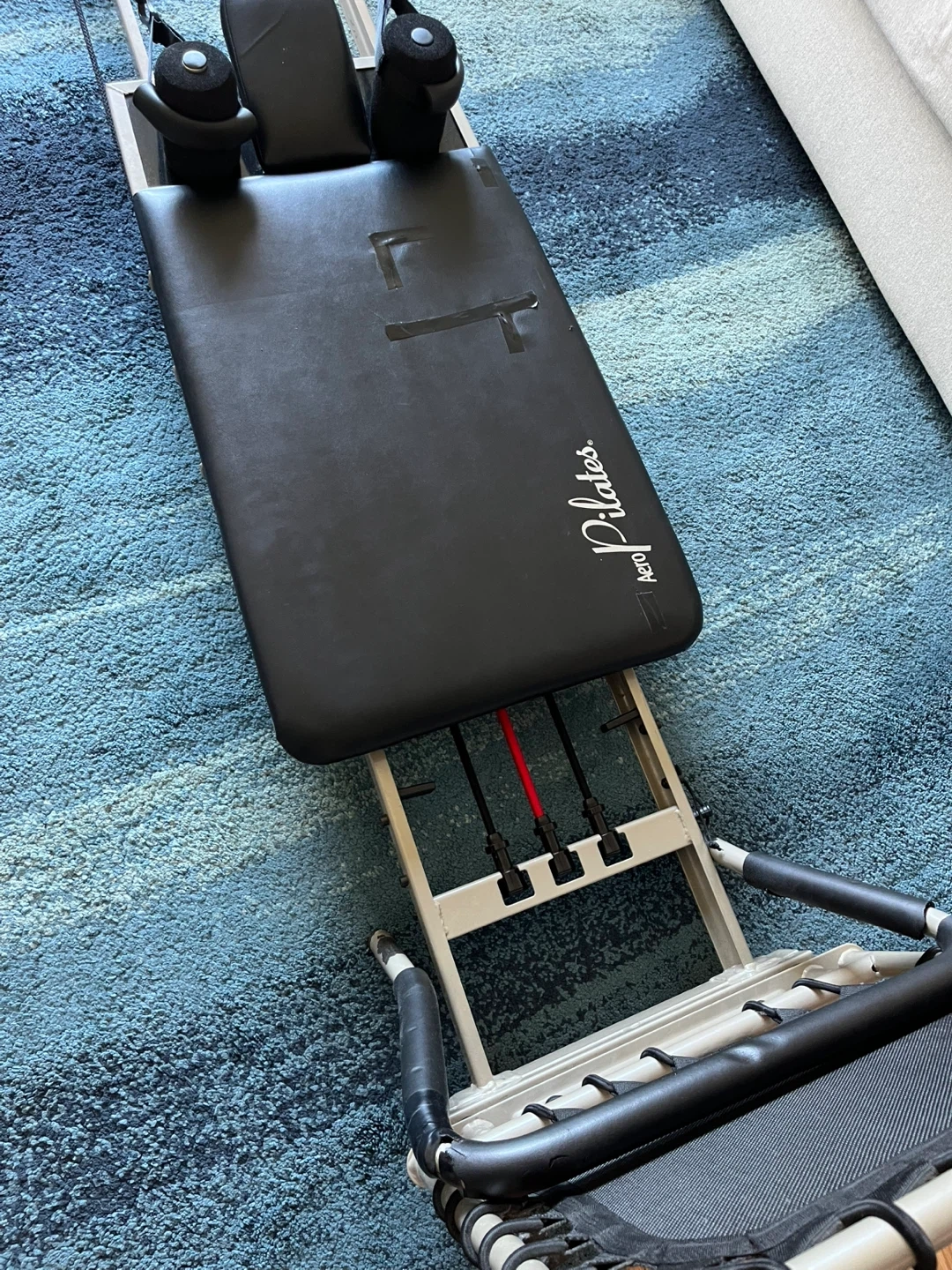 10Selling an AeroPilates reformer. It's in used condition, with some visible wear. Great for getting a full-body workout at home!
