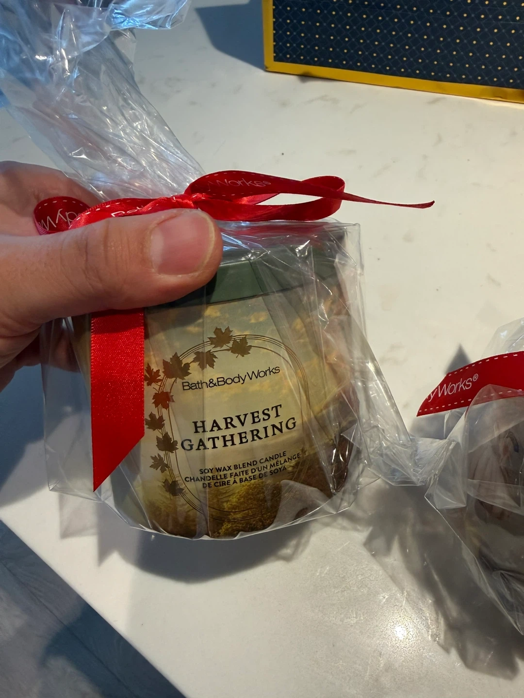 Brand new Bath & Body Works 3-wick candles. Soy wax blend. Scents include Harvest Gathering, White Pumpkin, and Apple Crisp. Perfect for cozy evenings!