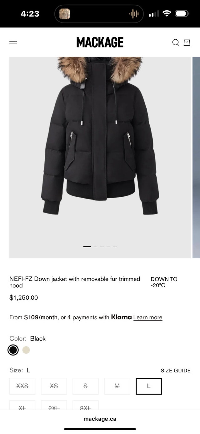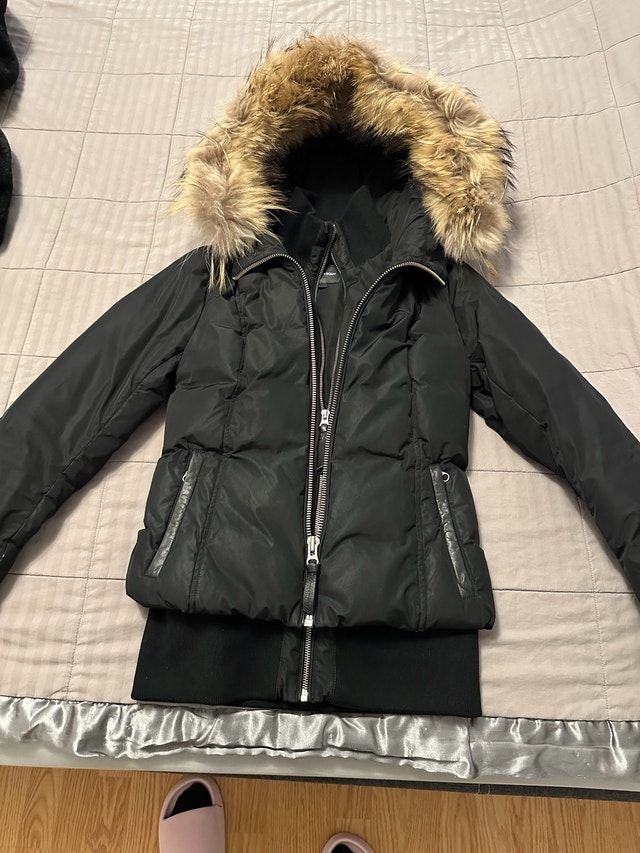 Brand: Mackage Size: xtra small Colour: Black Material: Down filled Features: Removable fur trimmed hood MSG for more details