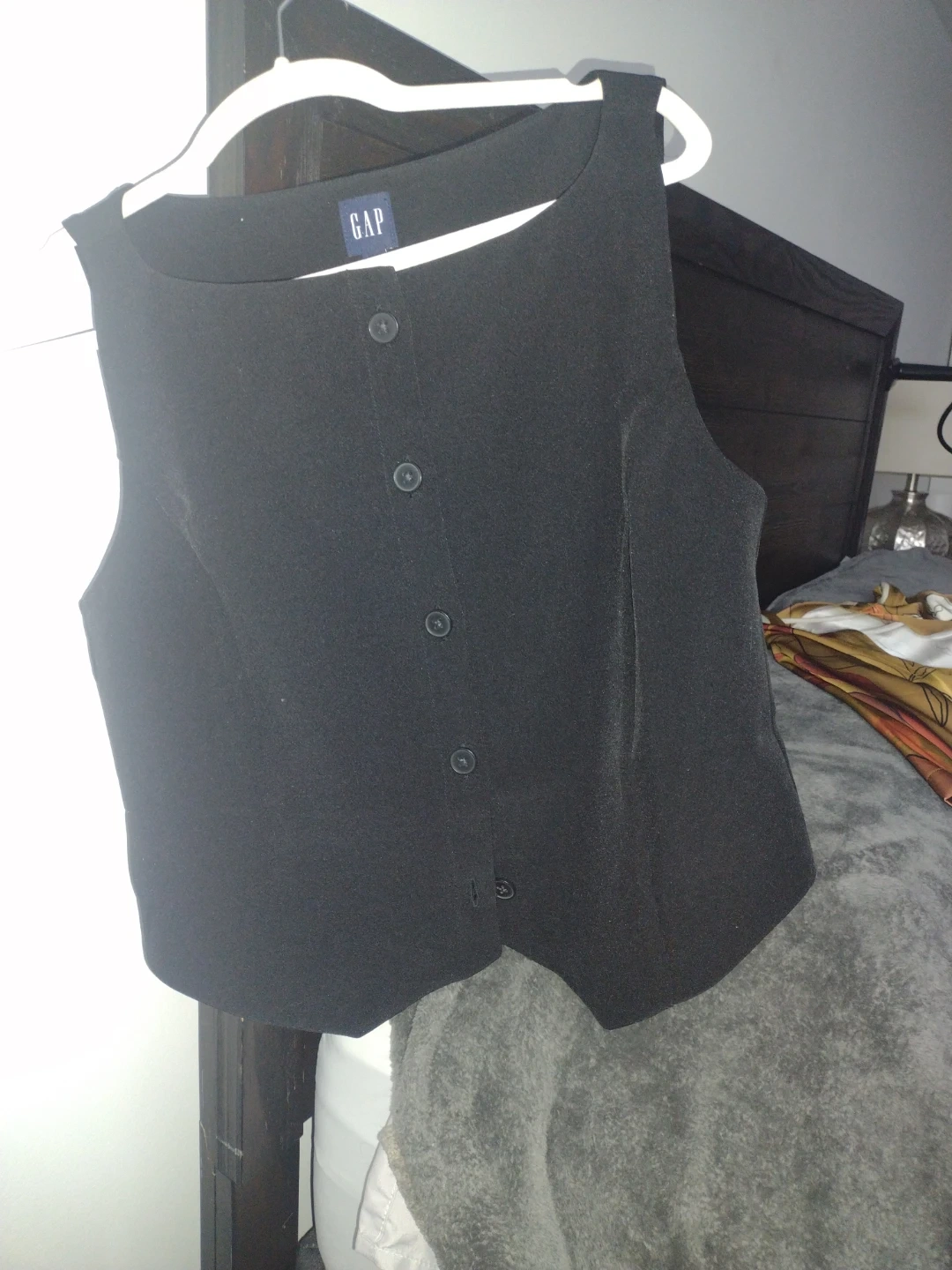 Selling a black sleeveless vest from GAP. It has a classic design with button-up closure. Perfect for layering or wearing on its own!