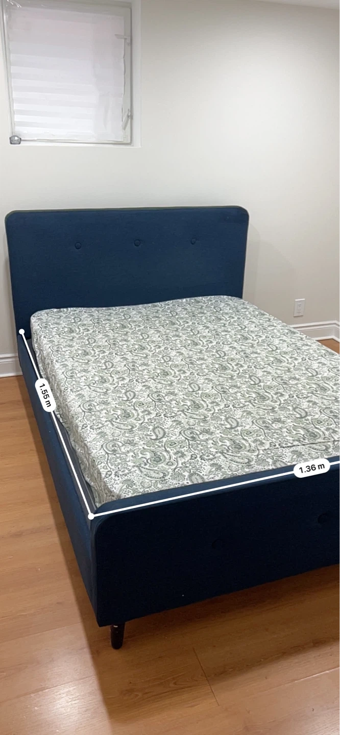 Used, but still in great condition. Mattress has some stains (can be deep cleaned, or you can take just the bed frame + headboard).