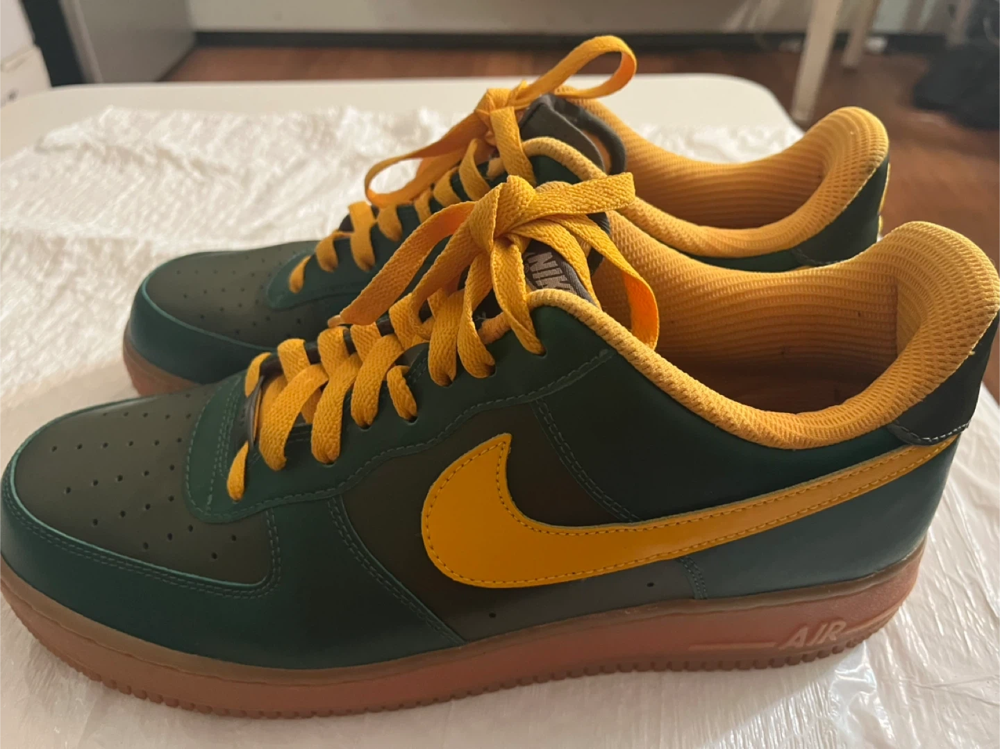 Nike Air Force 1 Low AQ3774-991 yellow green Sneakers Men’s Size 11.5. In excellent condition and great shape. From smoke pet free and healthy home. Pictures vary due to pixel resolution and size.