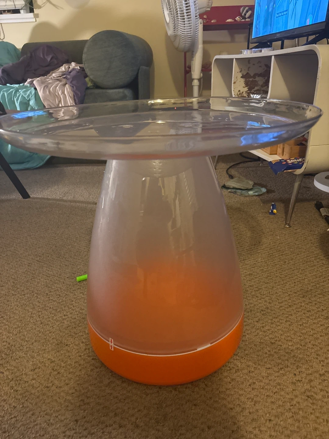 Selling a B. spaces by Battat Glow Table! It has a clear top and an orange base. It would be perfect for a kids room or playroom side table Or a bedside table!!
