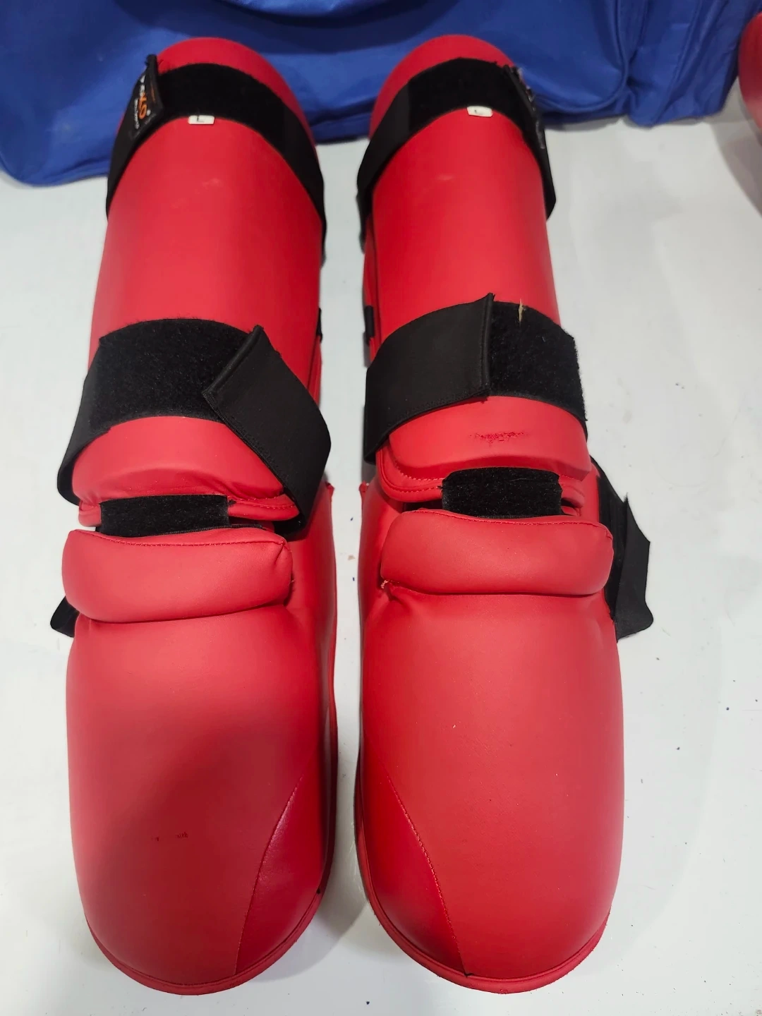 Also included are matching red shin and foot protectors and a blue duffel bag for easy transport. Great for martial arts training!