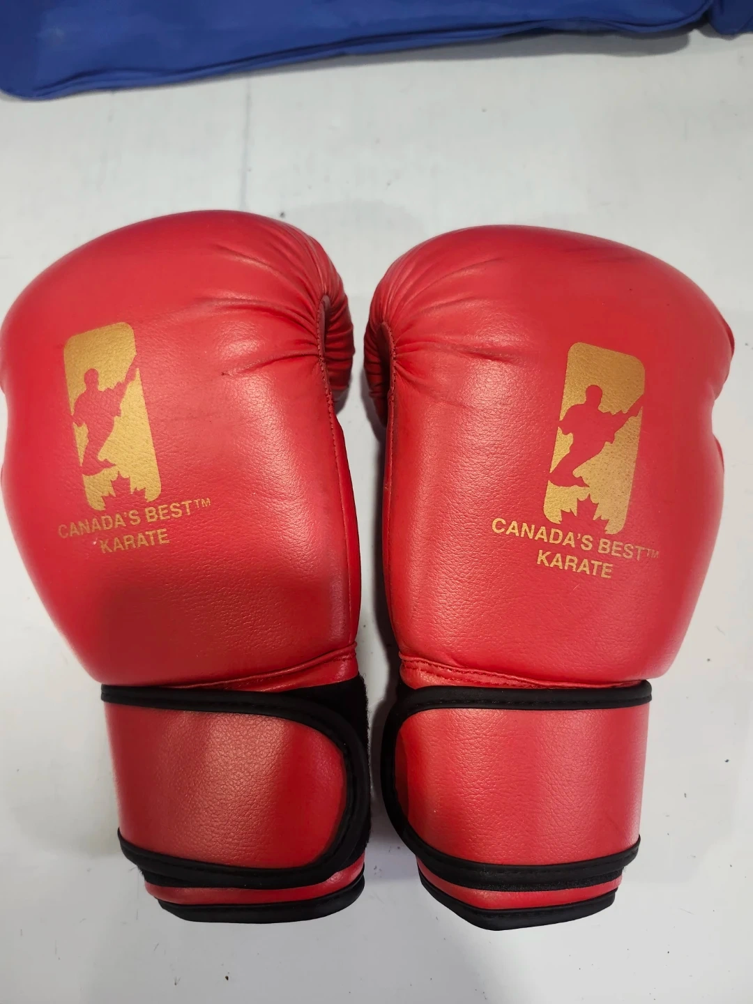 This set includes a BFG Fight Gear head protector and a pair of red Canada's Best Karate sparring gloves.