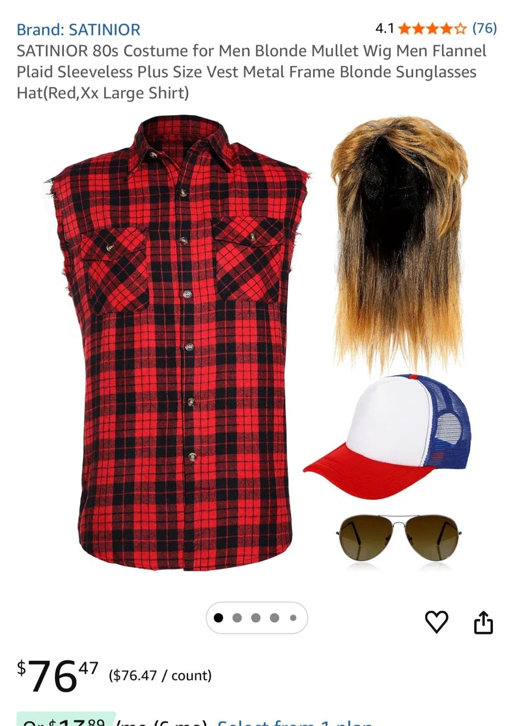 SATINCOR 80s Mullet Wig & Plaid Vest Costume Set