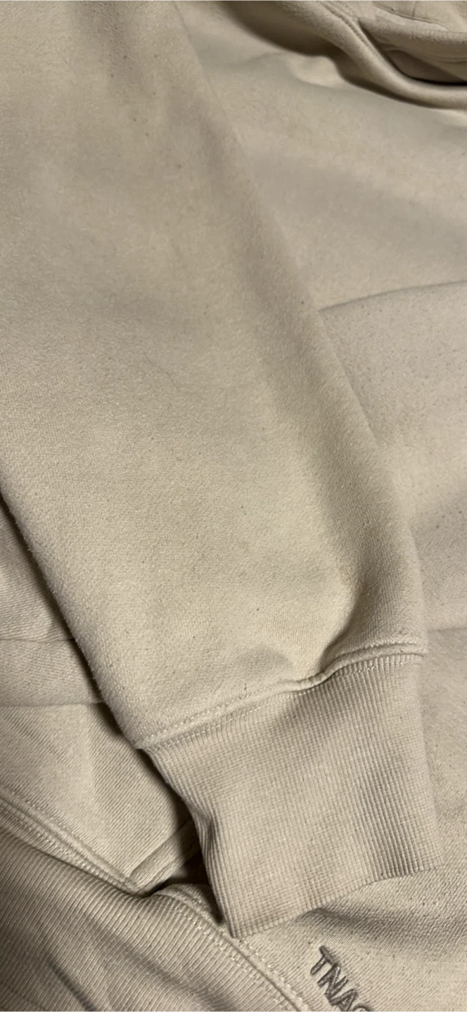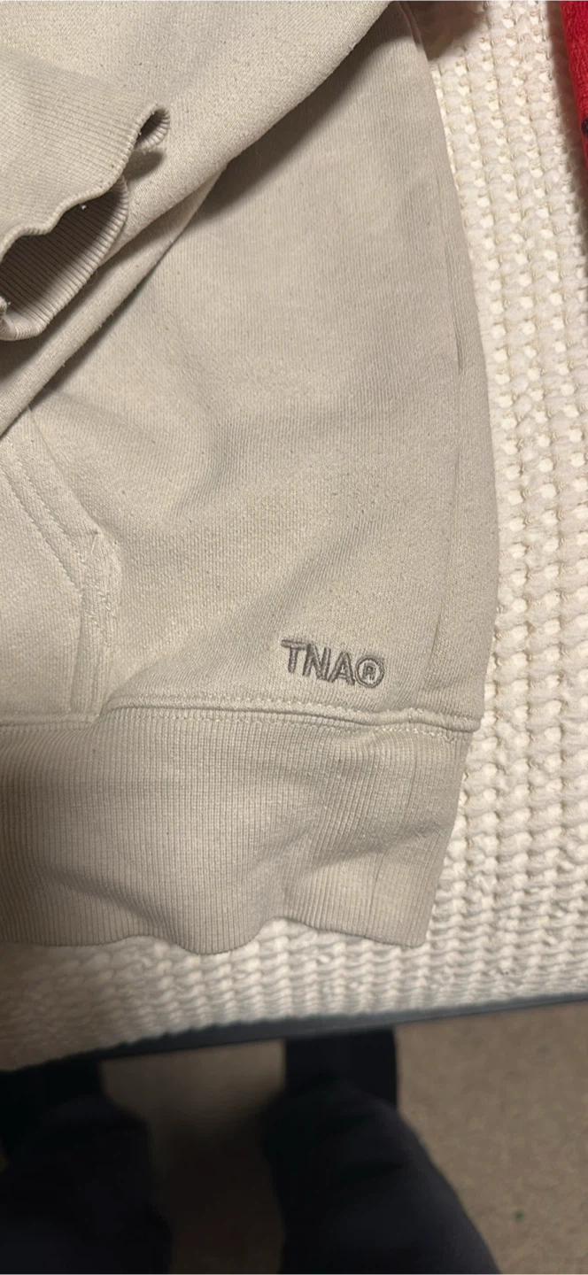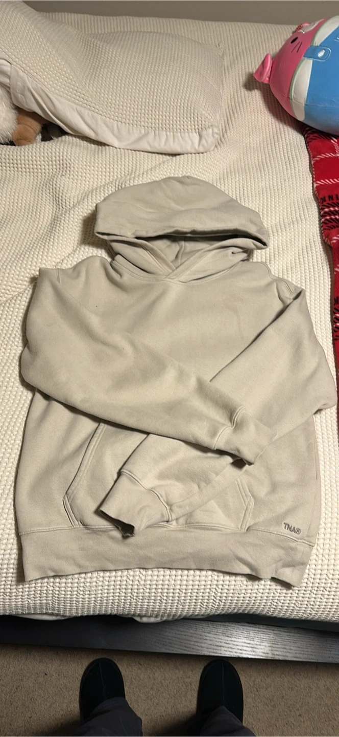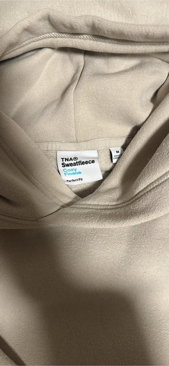 This TNA® hoodie is made with Sweatfleece fabric for a cozy feel. It's a size medium and has a perfect fit. The neutral colour makes it easy to pair with anything.