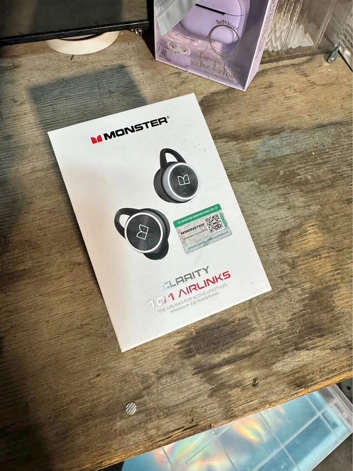 Monster Clarity 101 Airlinks are wireless in-ear headphones. These black and silver earbuds come in original packaging and feature Bluetooth connectivity and secure-fit ear fins. Let me know if you're interested!