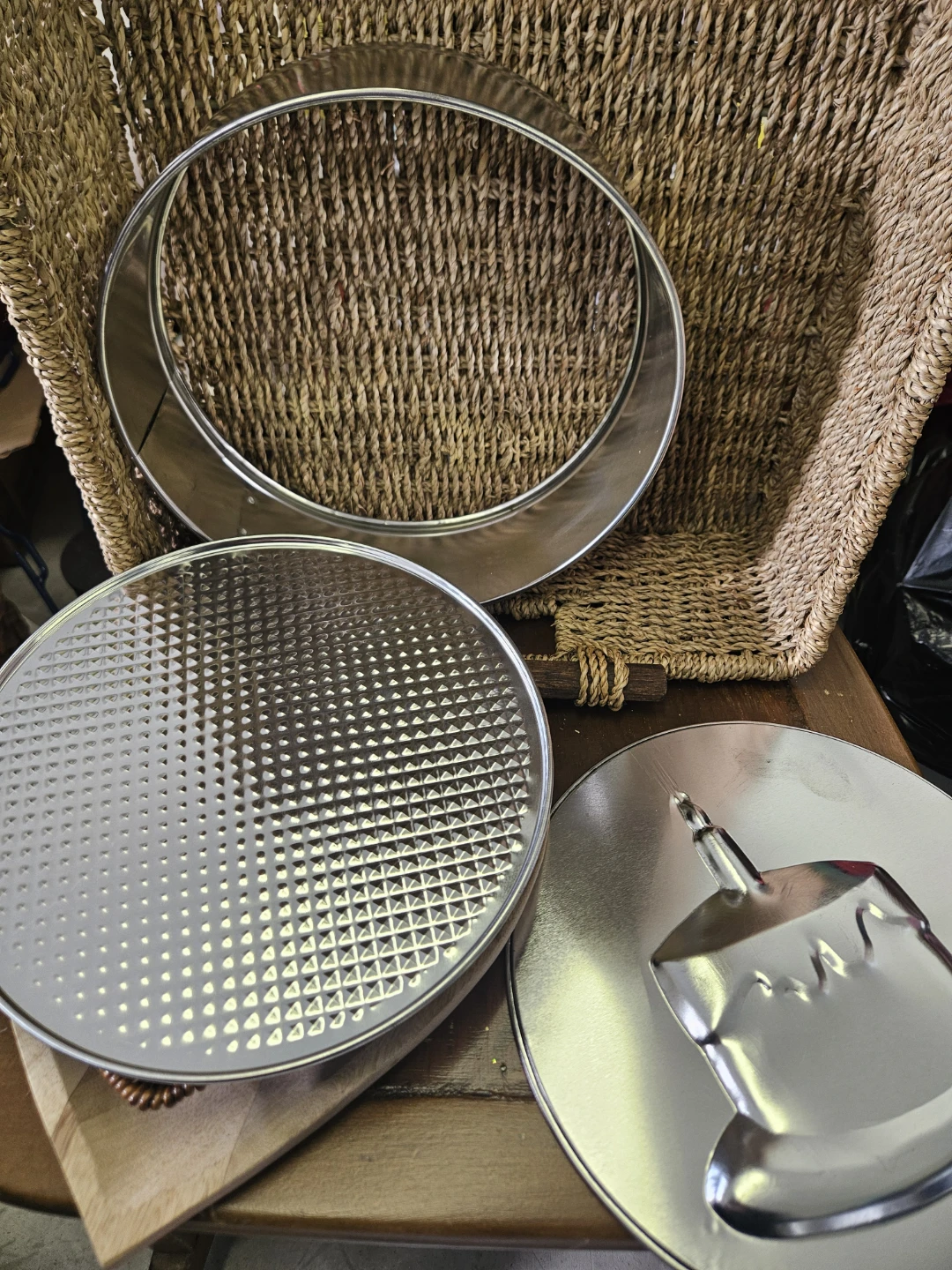 These round metal baking molds are perfect for creating fun treats. They include a bunny, a bear, and a textured grid insert for creative baking. A ring is also included to help shape cakes or desserts. Get ready to bake some adorable desserts!