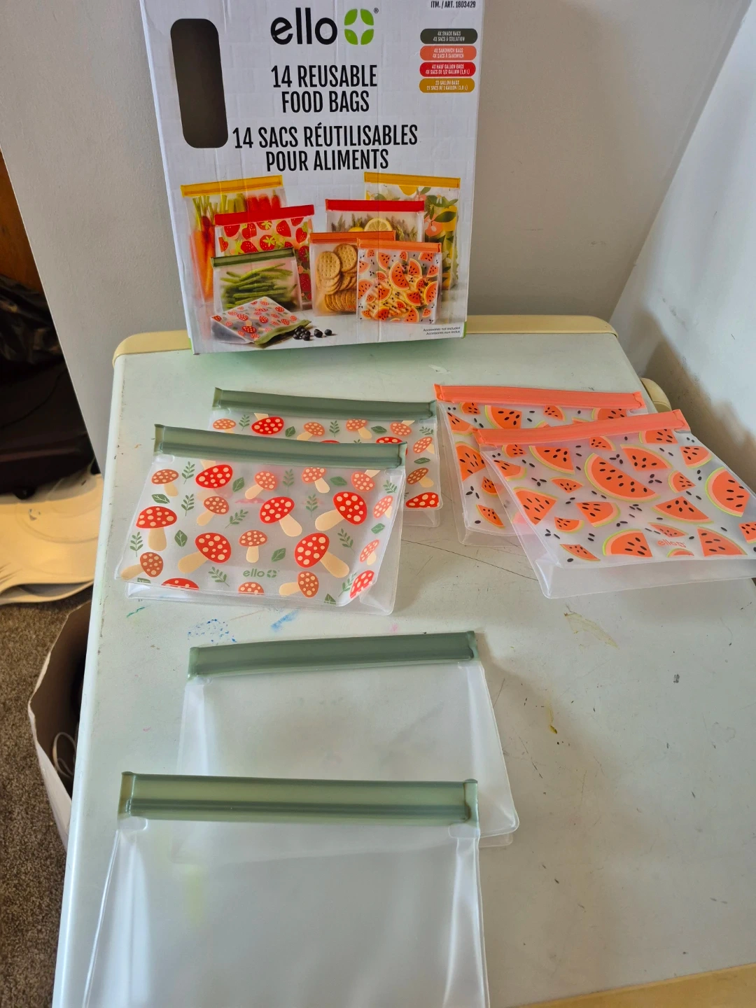 This set includes 4 reusable food bags. They come in fun patterns watermelons. Great for snacks and lunches!