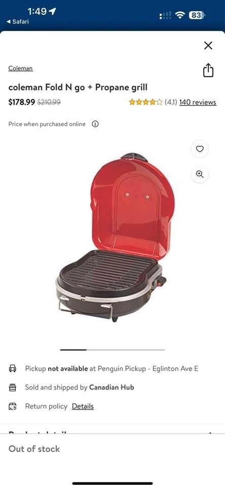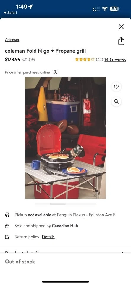 Buy & SellColeman Fold N Go+ Portable BBQ Propane GrillColeman Fold N Go+ Portable BBQ Propane Grill$140Brand new in box / never used. Price is FIRM! Pickup by Highway 7 & Warden.WHERE TO MEETCheck LocationView MapSELLERAndrewDowntown Markham150 reviews0 chats·0 favorites·6 viewsSEND CHAT TO SELLERHi Andrew! I’m interested in your listing.Hi Andrew! I’m interested in your listing.Get the Karrot app to chatSign In to chat