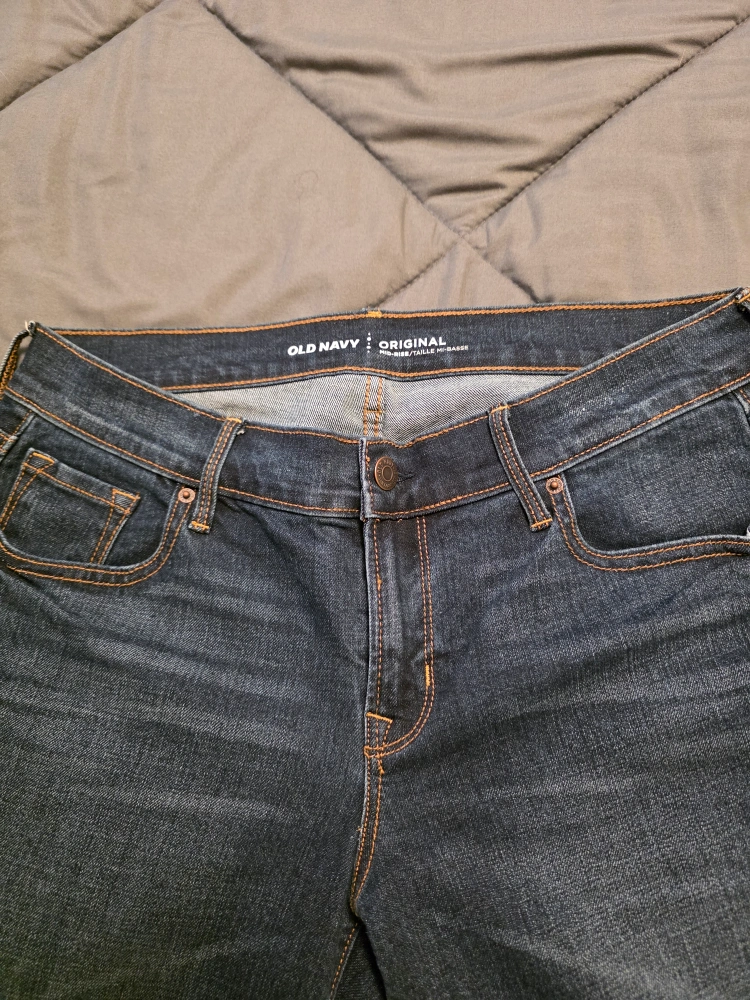 These are a pair of Old Navy Diva Bootcut jeans in a size 4 regular. They're made of 86% cotton, 13% polyester, and 1% spandex. These jeans are a nice dark wash and have the classic 5-pocket styling. They're in great condition and ready for a new home!