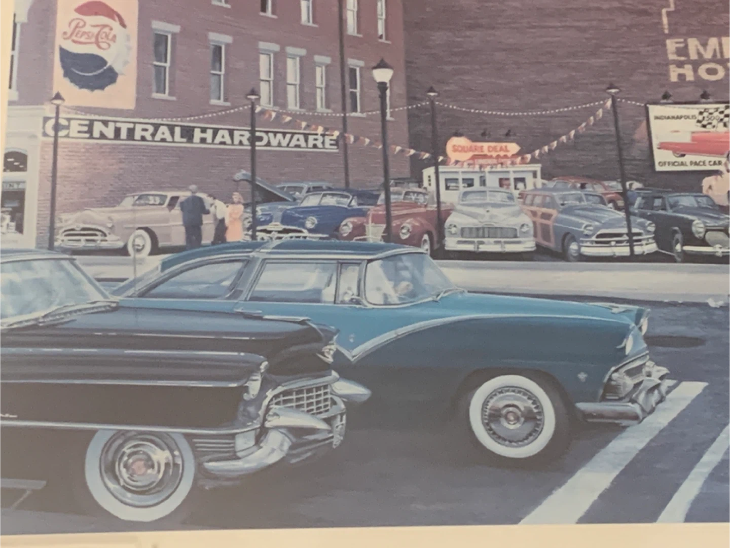 About the Artwork “Square Deal Used Cars” showcases a vibrant vintage car lot filled with classic automobiles from the golden era of the 1950s through the muscle-car years. Snyder’s work is beloved by collectors for its storytelling, detail, and warm nostalgic feel that instantly transports you back in time.