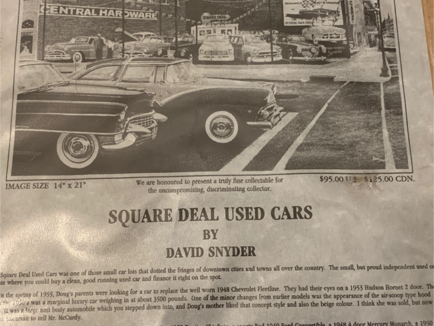 DAVID SNYDER “SQUARE DEAL USED CARS” FRAMED LIMITED EDITION PRINT – 30” x 23”