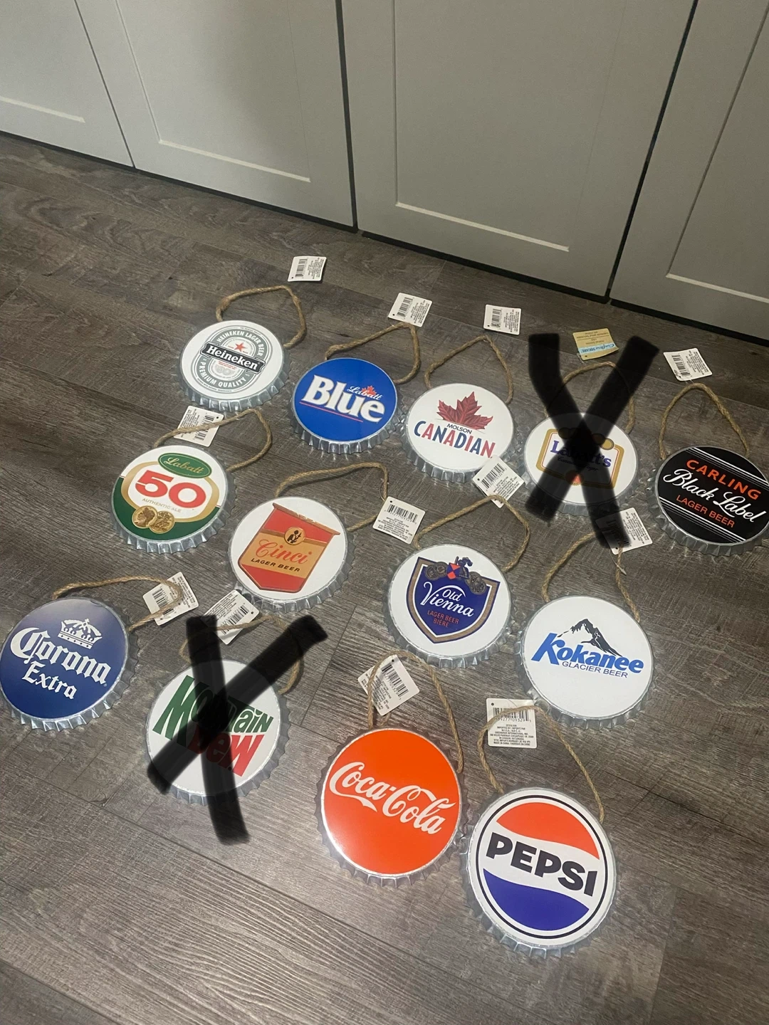 Bottle Cap Wall Decor - Coca-Cola, Pepsi, Corona