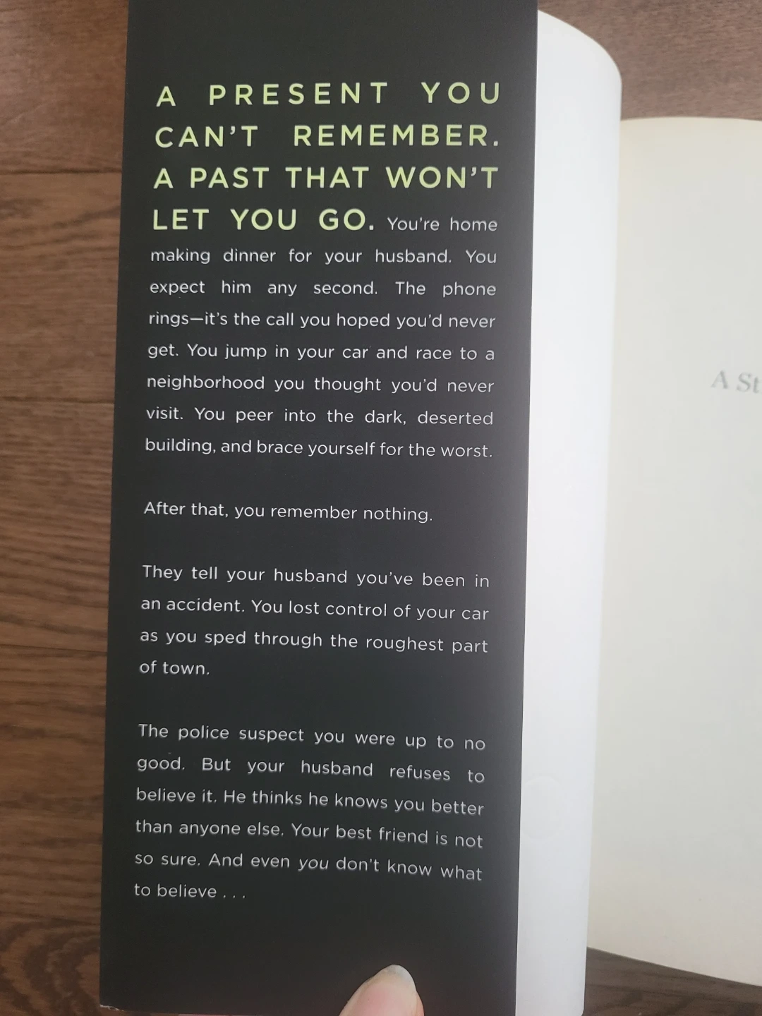 This is Shari Lapena's novel, "A Stranger in the House". It's a thriller with many twists. It explores themes of memory and suspicion. A compelling read for mystery fans!
