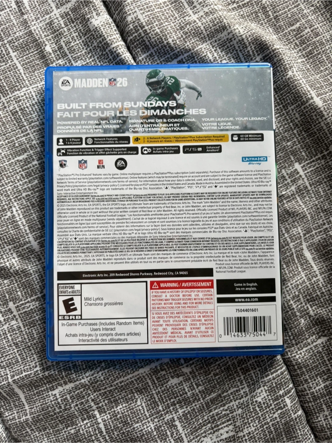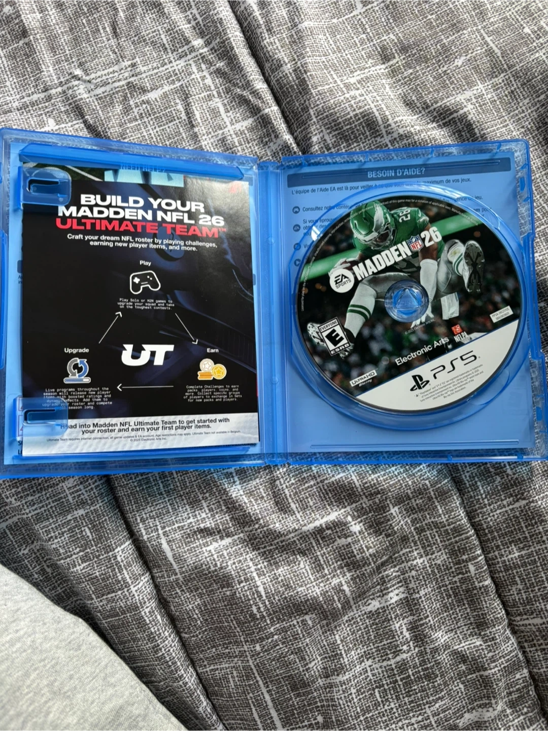 EA Sports Madden NFL 26 for PS5. This game features Ultimate Team mode where you can build your dream NFL roster. It requires PlayStation Plus for online play.