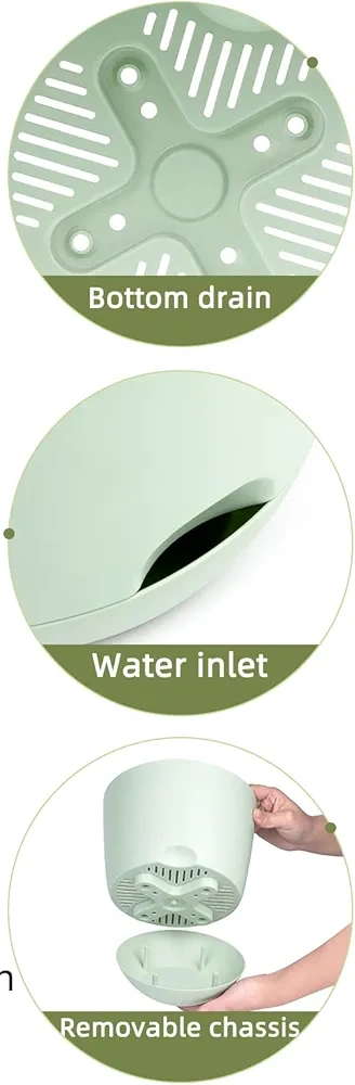 comes with light teal self watering pots.