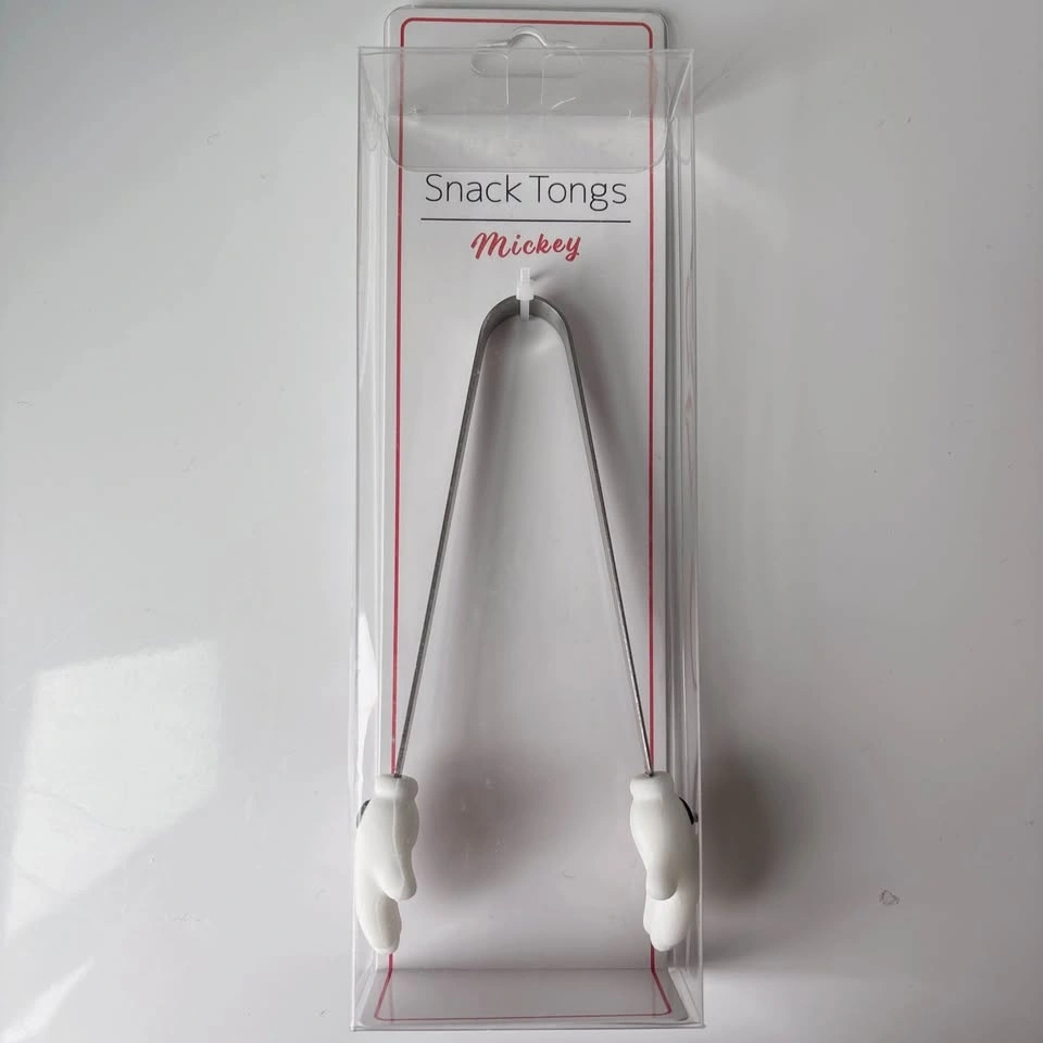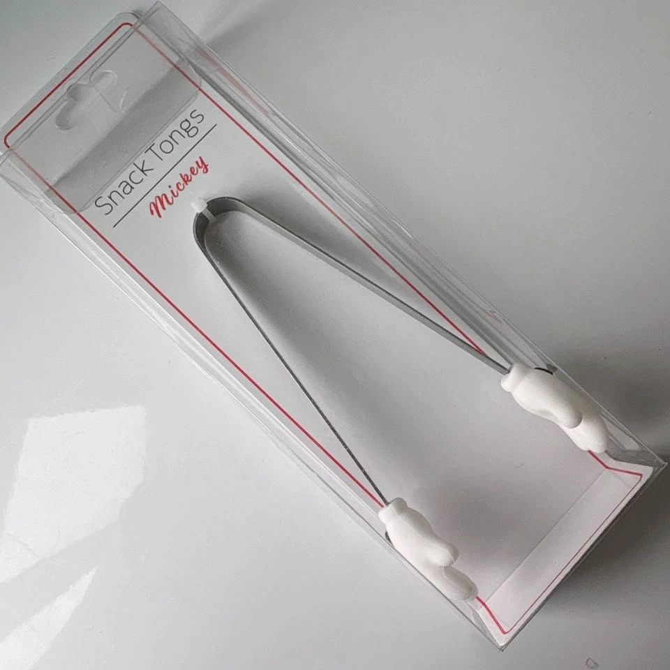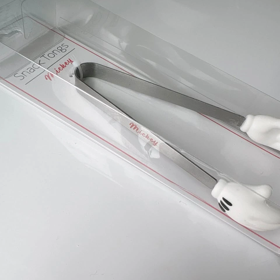 Stainless steel/silicone Mickey Mouse hands snack tongs. Brand new in box.