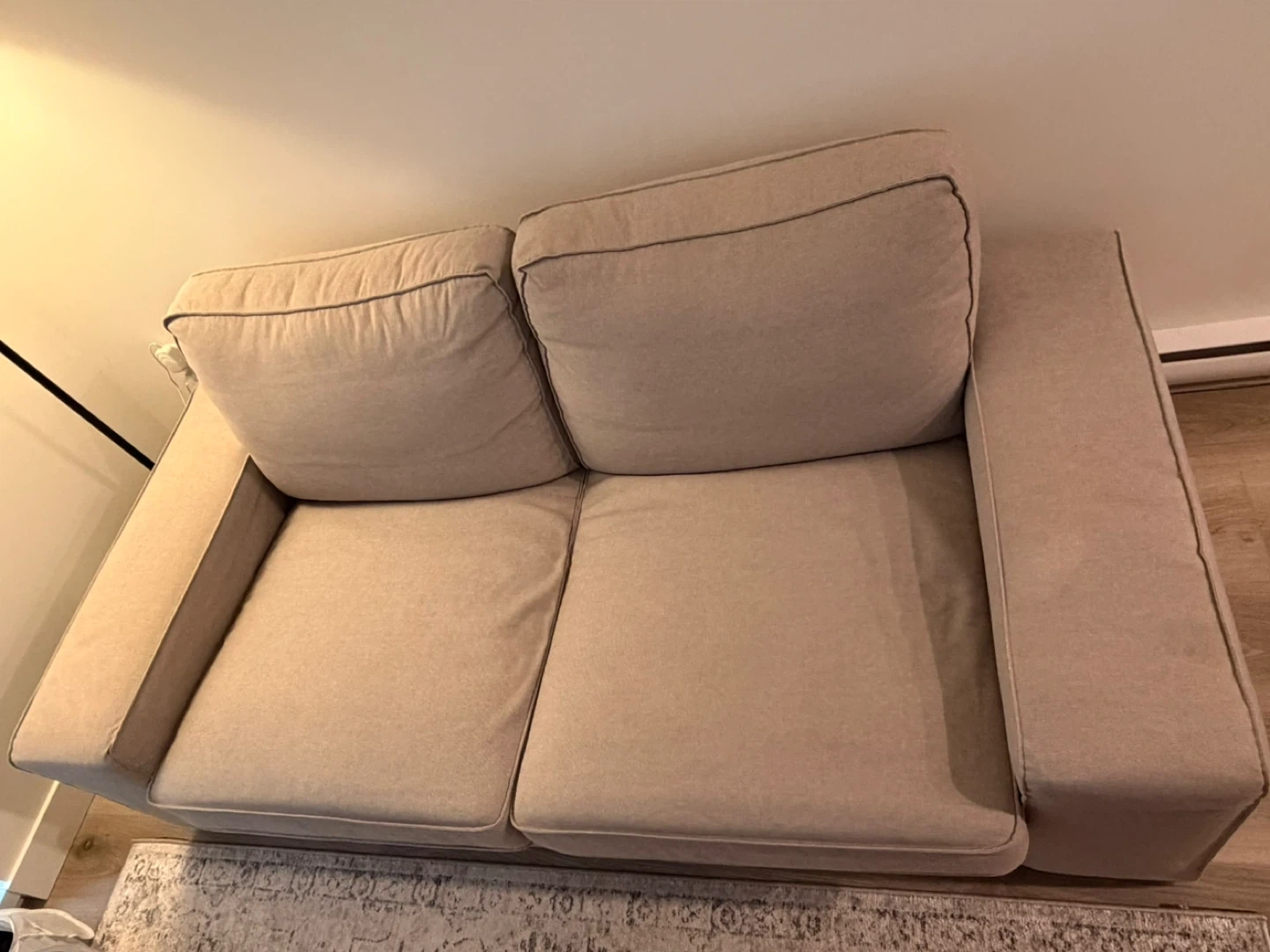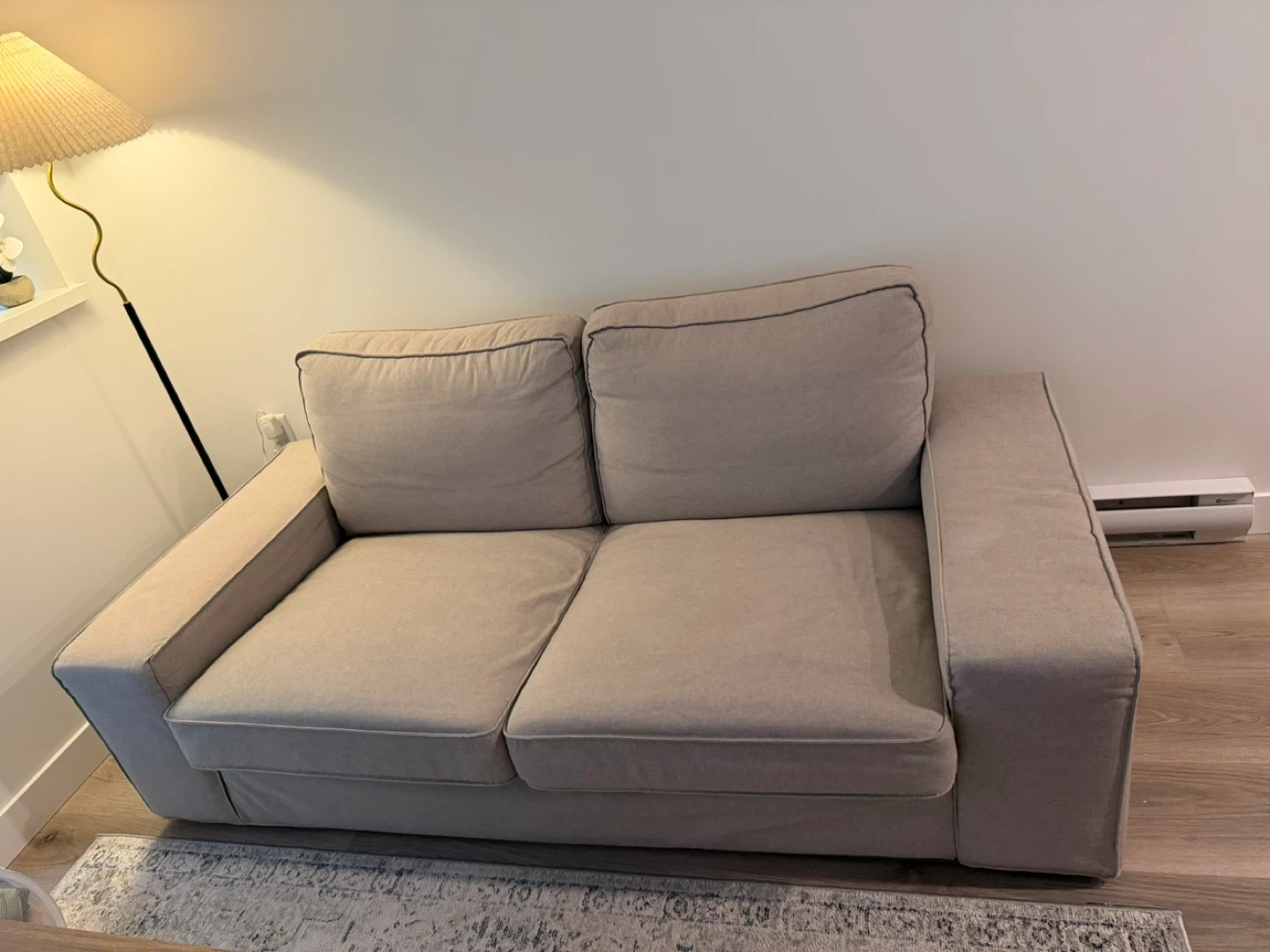 Kivik light gray two-seater sofa in good condition. The arms can be disassembled for easier transport, and the covers are removable and machine washable.