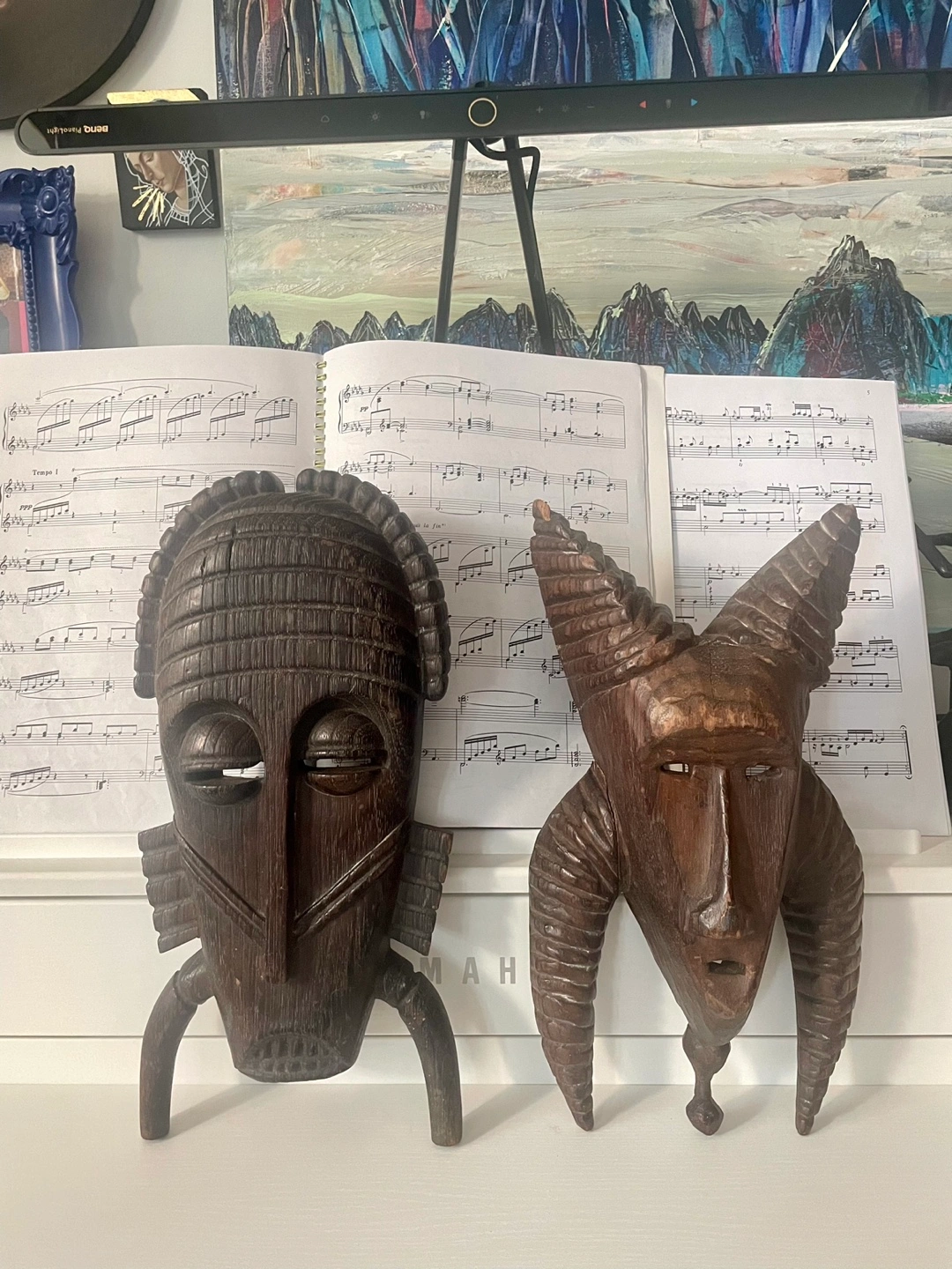 Beautiful decorative African masks. 14” H $55 per mask, $100 for the pair. Pick up around Sherbourne and Wellesley Could deliver for a fee.