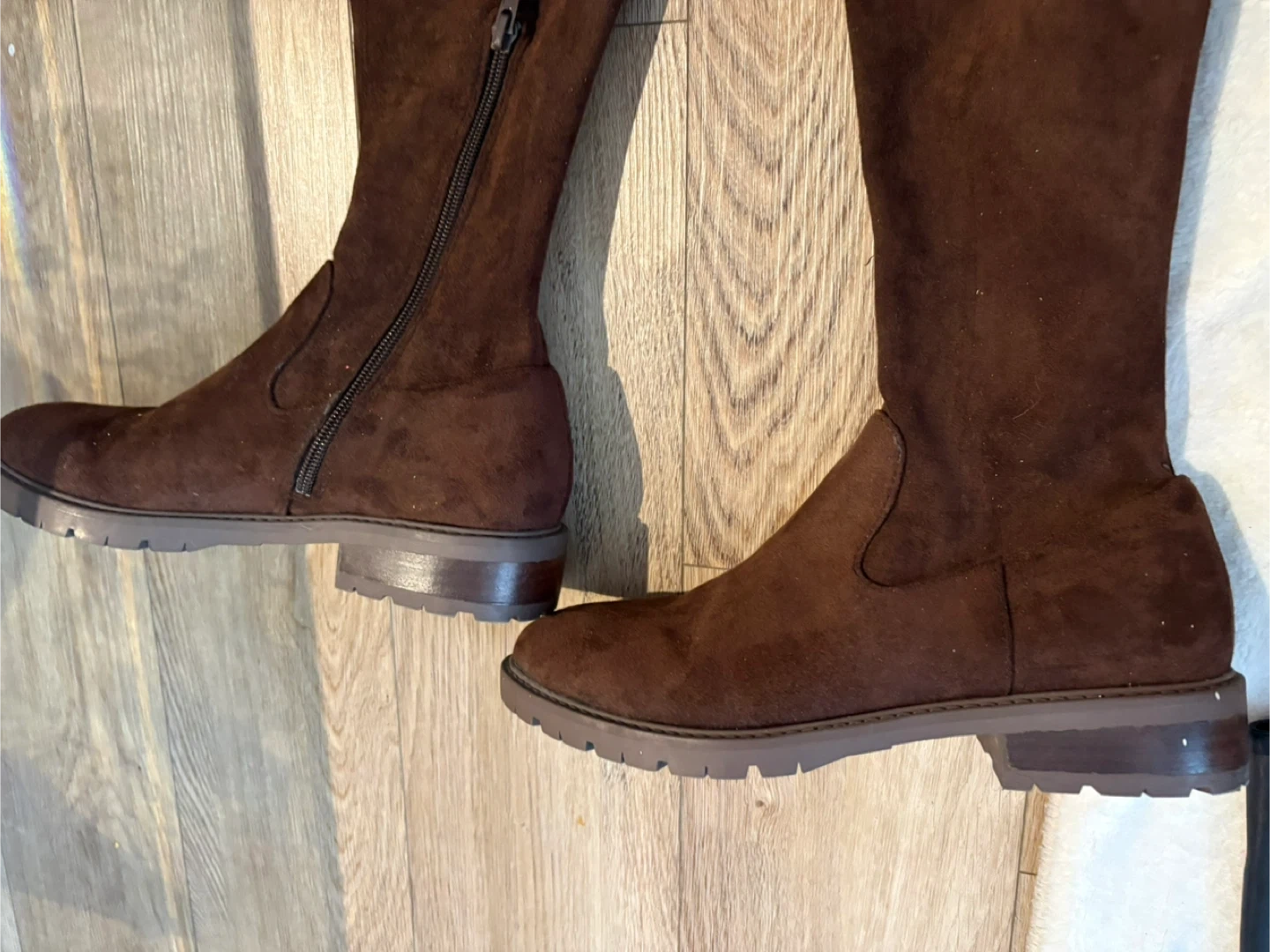 Brand new Steve Madden Women's brown over-the-knee boots. These boots have a side zipper closure and a lug sole. They're made from a soft, suede-like material. These are great for fall and winter weather! Size 8