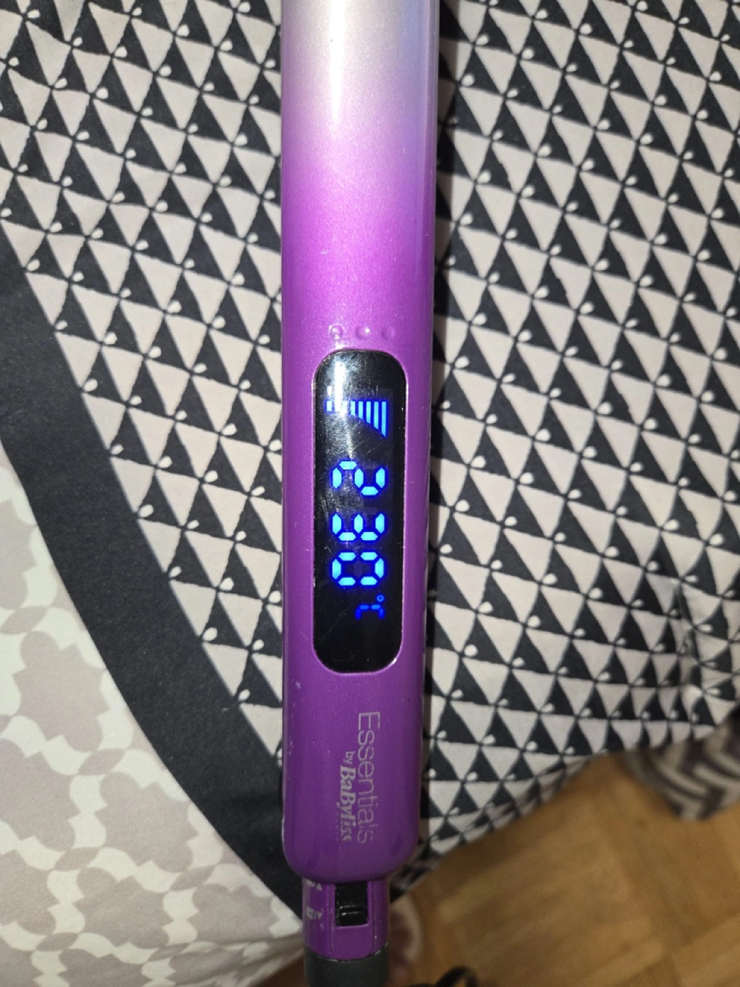 Hair styling tool with a purple ombre design. Features a digital display. The tool is in good condition. Perfect for creating sleek hairstyles in the comfort of your own home.
