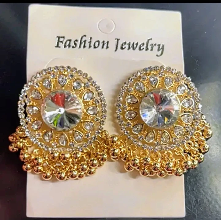 Gold Tone Statement Earrings with Crystals