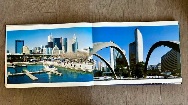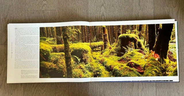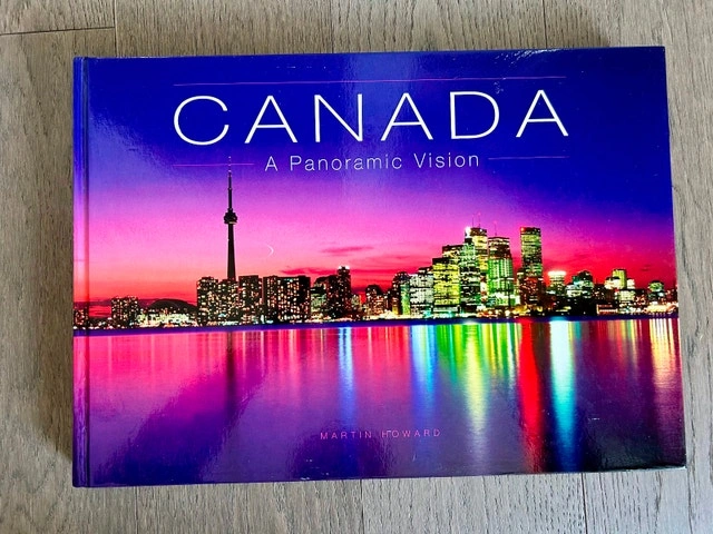 This large hardcover book measures 16.75” x 12” x 1”. When open, it spans 33.5” wide. It features beautiful pictures of Canada's scenery, culture, tundra, cities, birds, animals, mountain peaks, lakes, ocean coastlines, trees, and much more. The book has 256 pages and was published in 2007. There is minor damage to the bottom of the spine from storage. Pickup is in Brampton, near Queen and Kennedy.