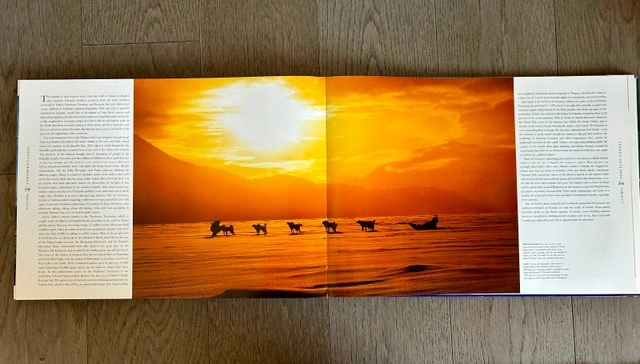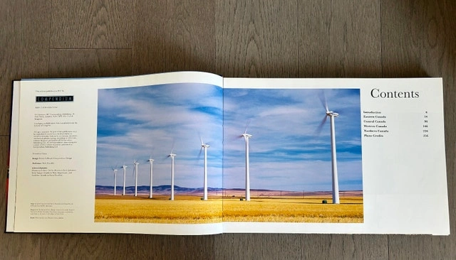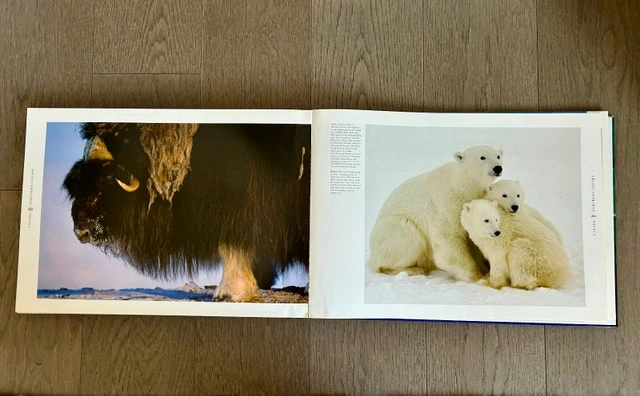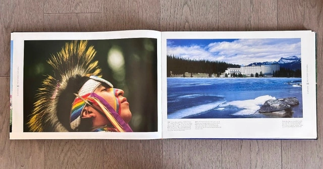 This large hardcover book measures 16.75” x 12” x 1”. When open, it spans 33.5” wide. It features beautiful pictures of Canada's scenery, culture, tundra, cities, birds, animals, mountain peaks, lakes, ocean coastlines, trees, and much more. The book has 256 pages and was published in 2007. There is minor damage to the bottom of the spine from storage. Pickup is in Brampton, near Queen and Kennedy.