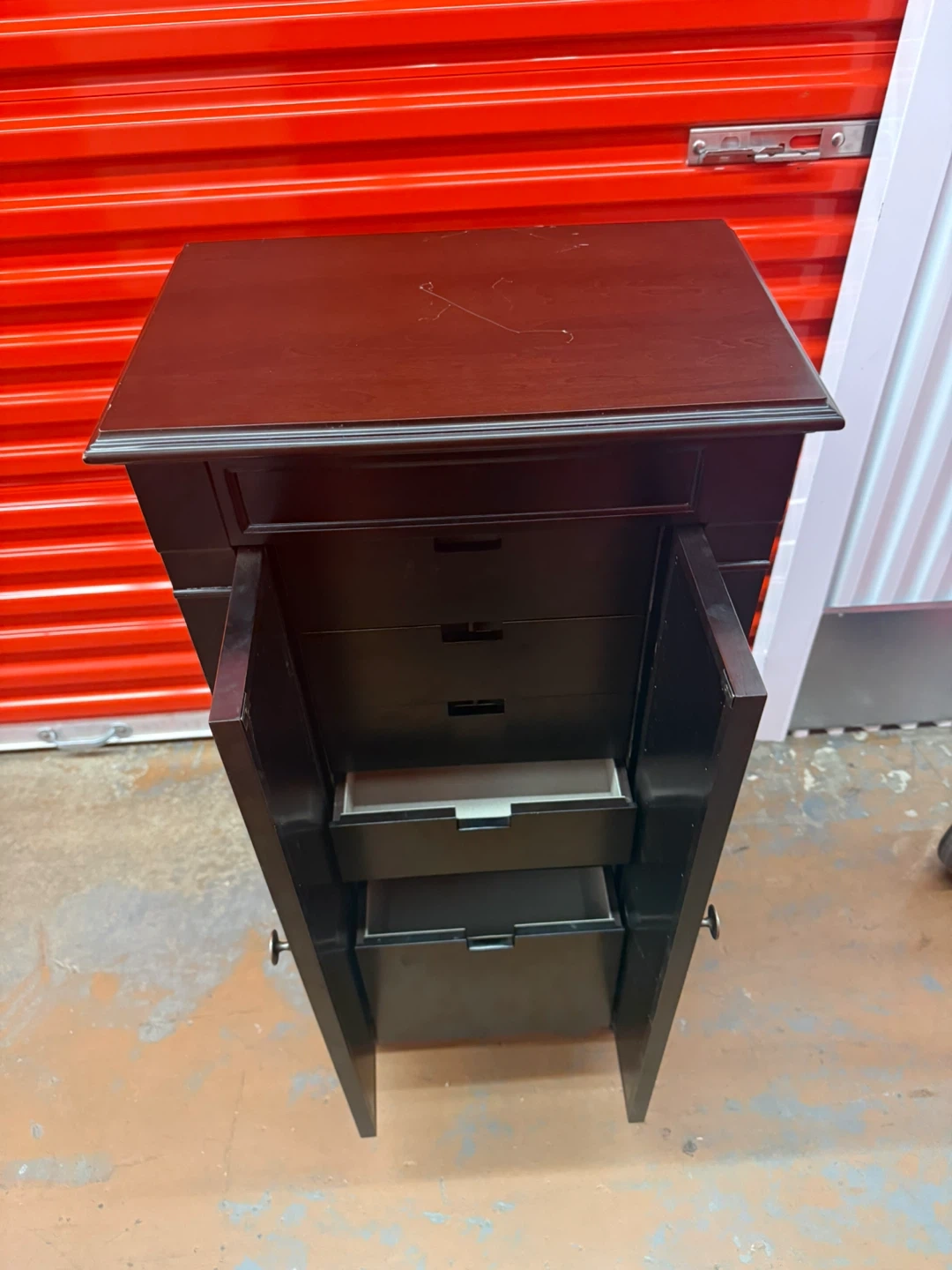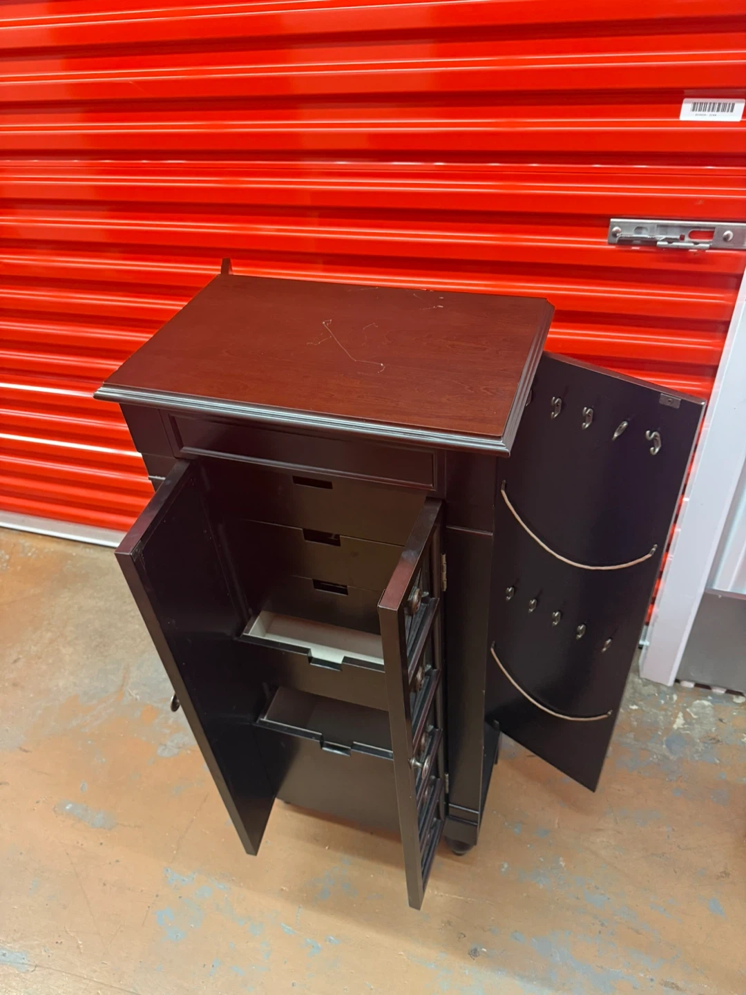 Buy & SellJewelry Armoire Cabinet StorageJewelry Armoire Cabinet Storage$325This is a jewelry armoire cabinet with plenty of storage. It is a dark brown color and has some scratches on the top.WHERE TO MEETNew RochelleView MapSELLERverifiedRayUnion Ave650 reviews0 chats·0 favorites·37 viewsSEND CHAT TO SELLERHi Ray! I’m interested in your listing.Hi Ray! I’m interested in your listing.Get the Karrot app to chatSign In to chat