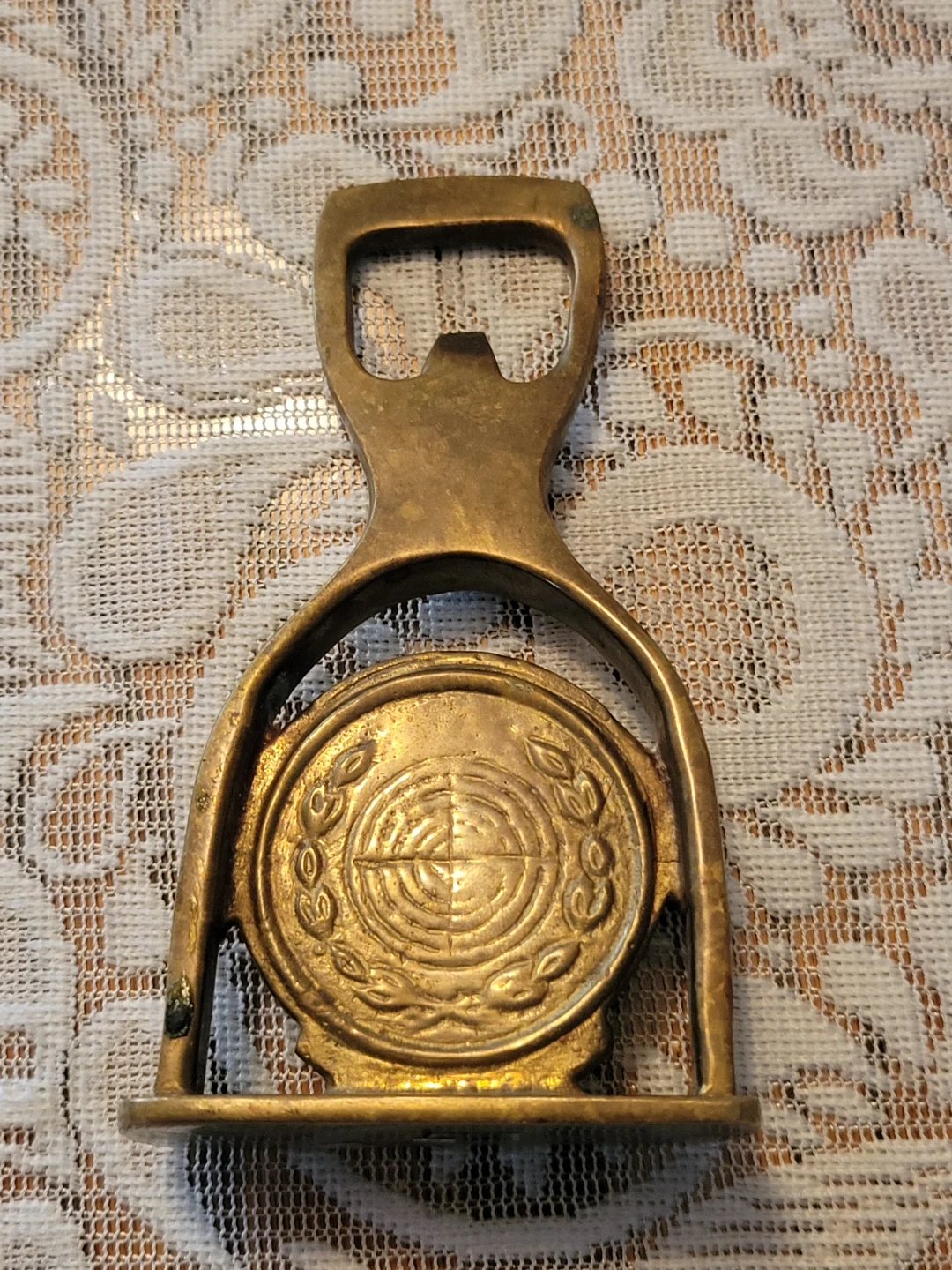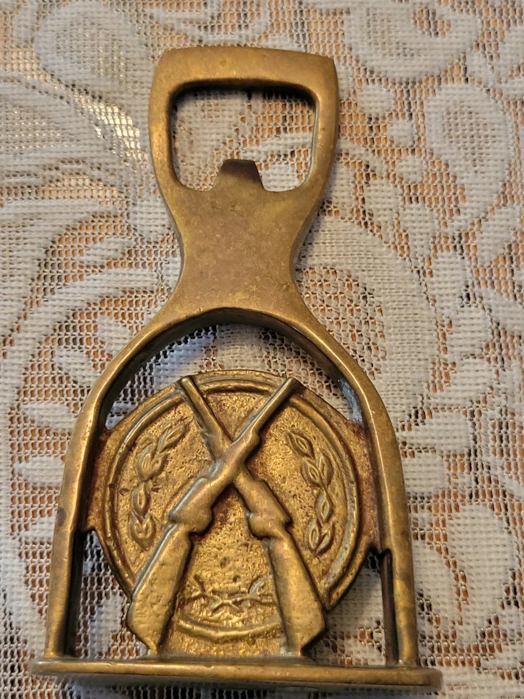 Vintage Brass Bottle Opener with Crossed Rifles Emblem w/ Target