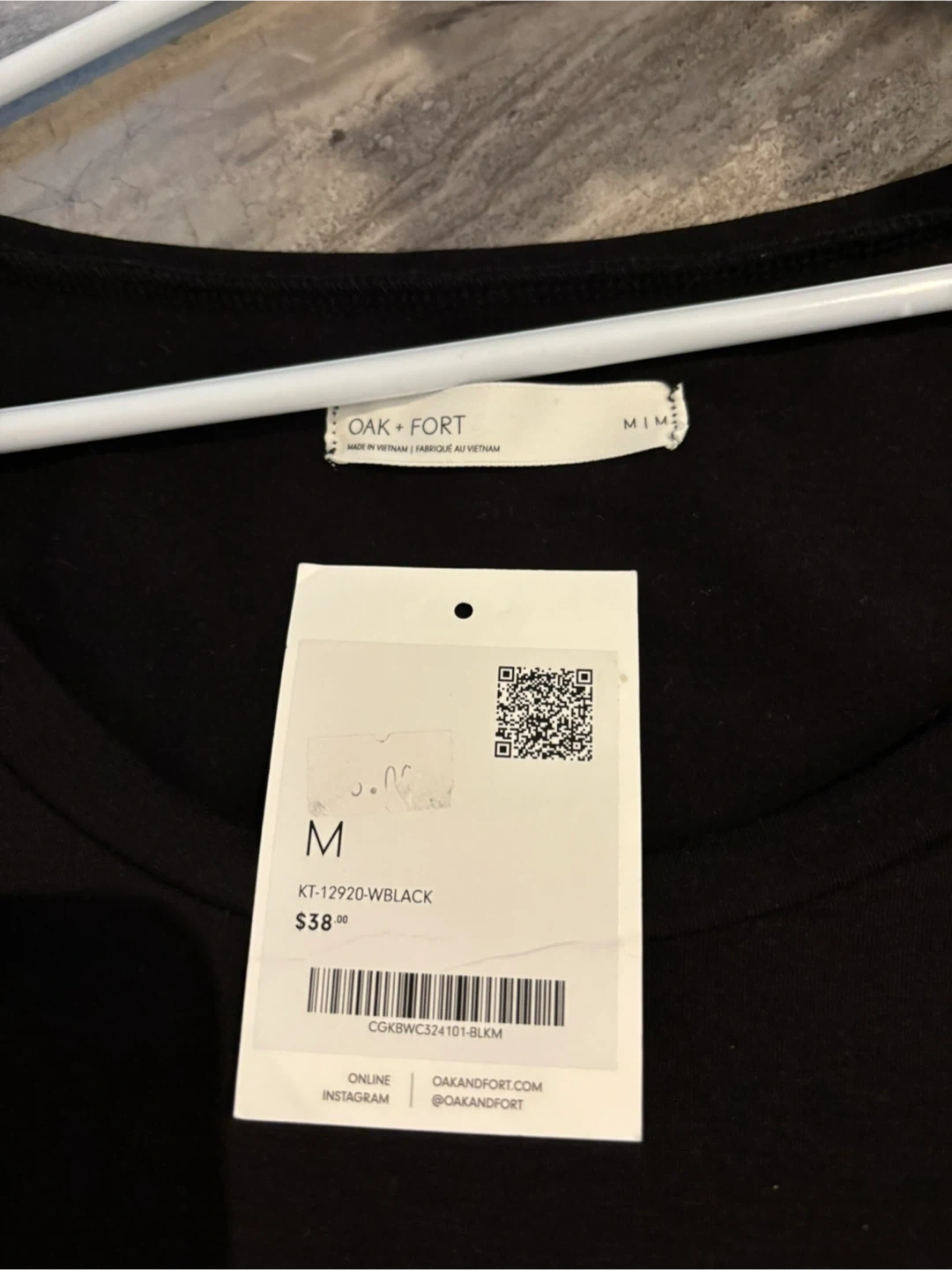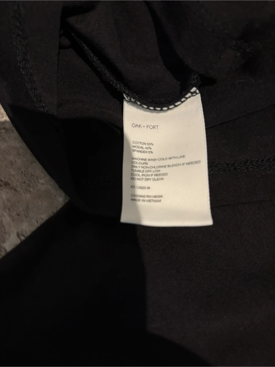 This is a new, never-worn Oak and Fort black long sleeve top, size medium. The sleek design and comfortable fit make it a versatile addition to any wardrobe.