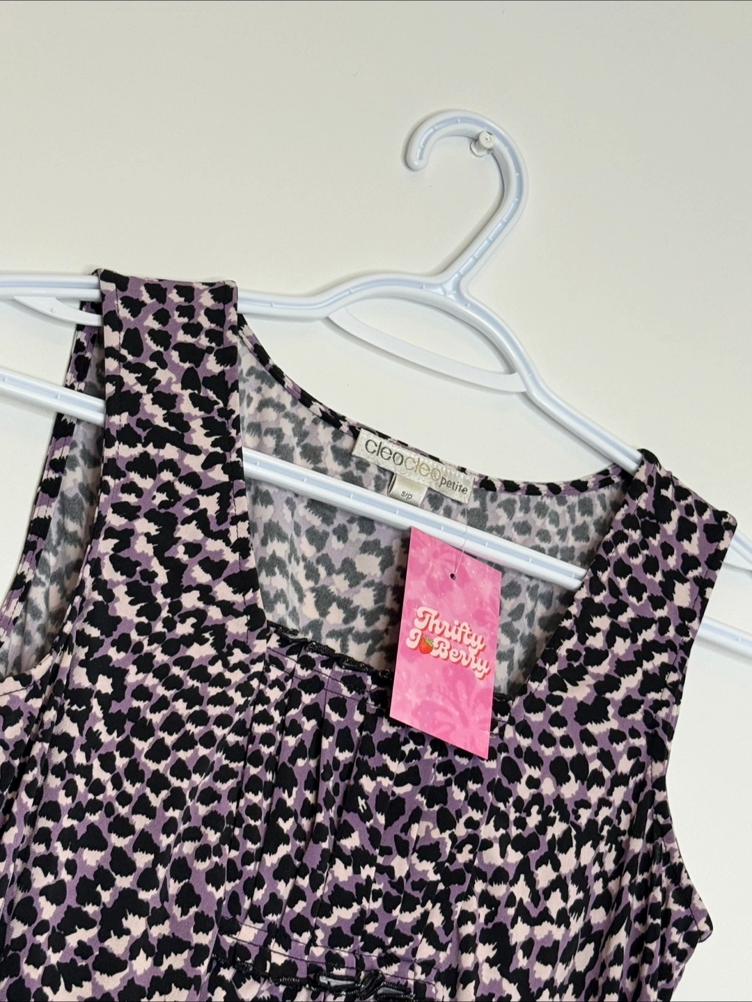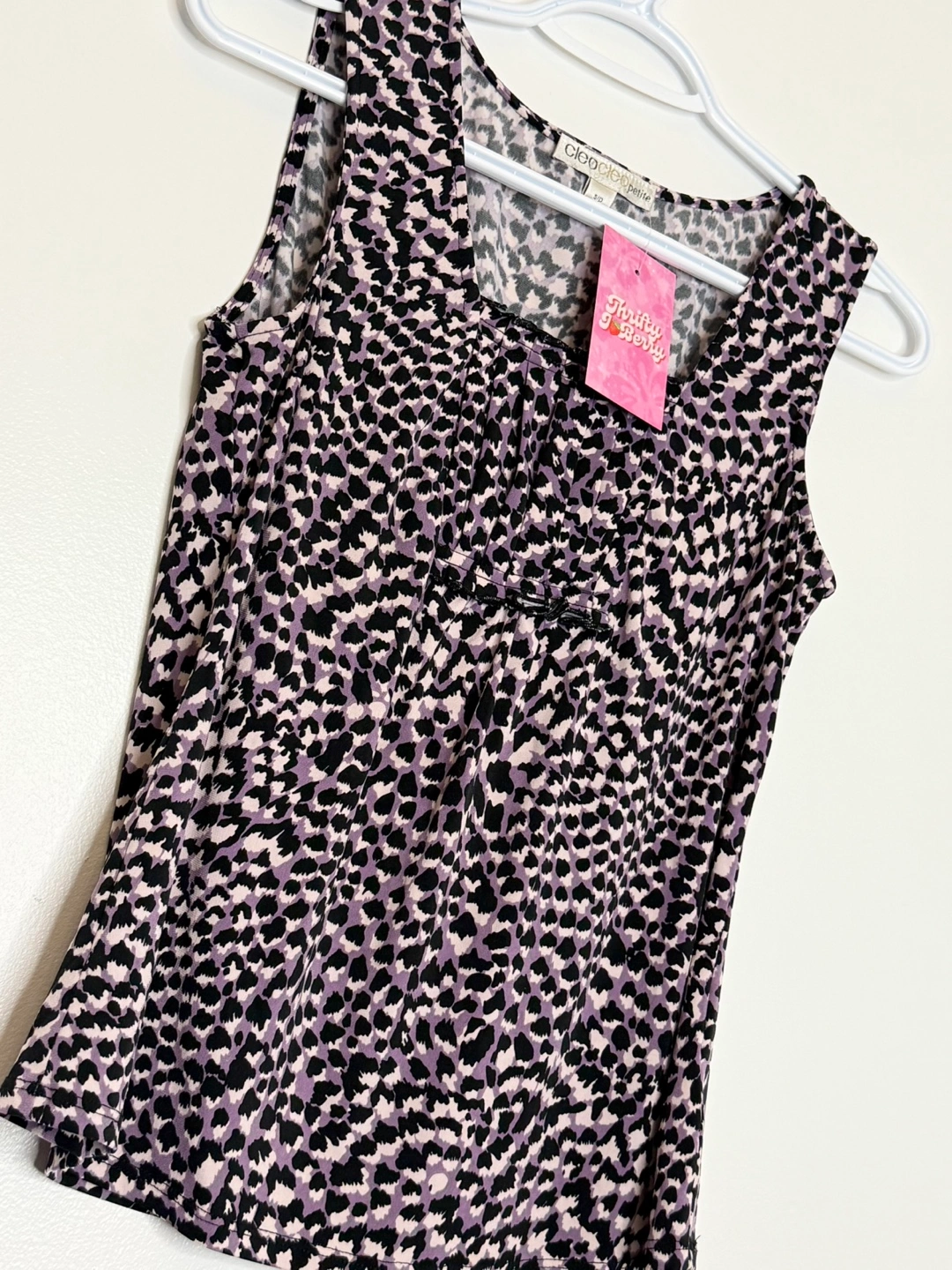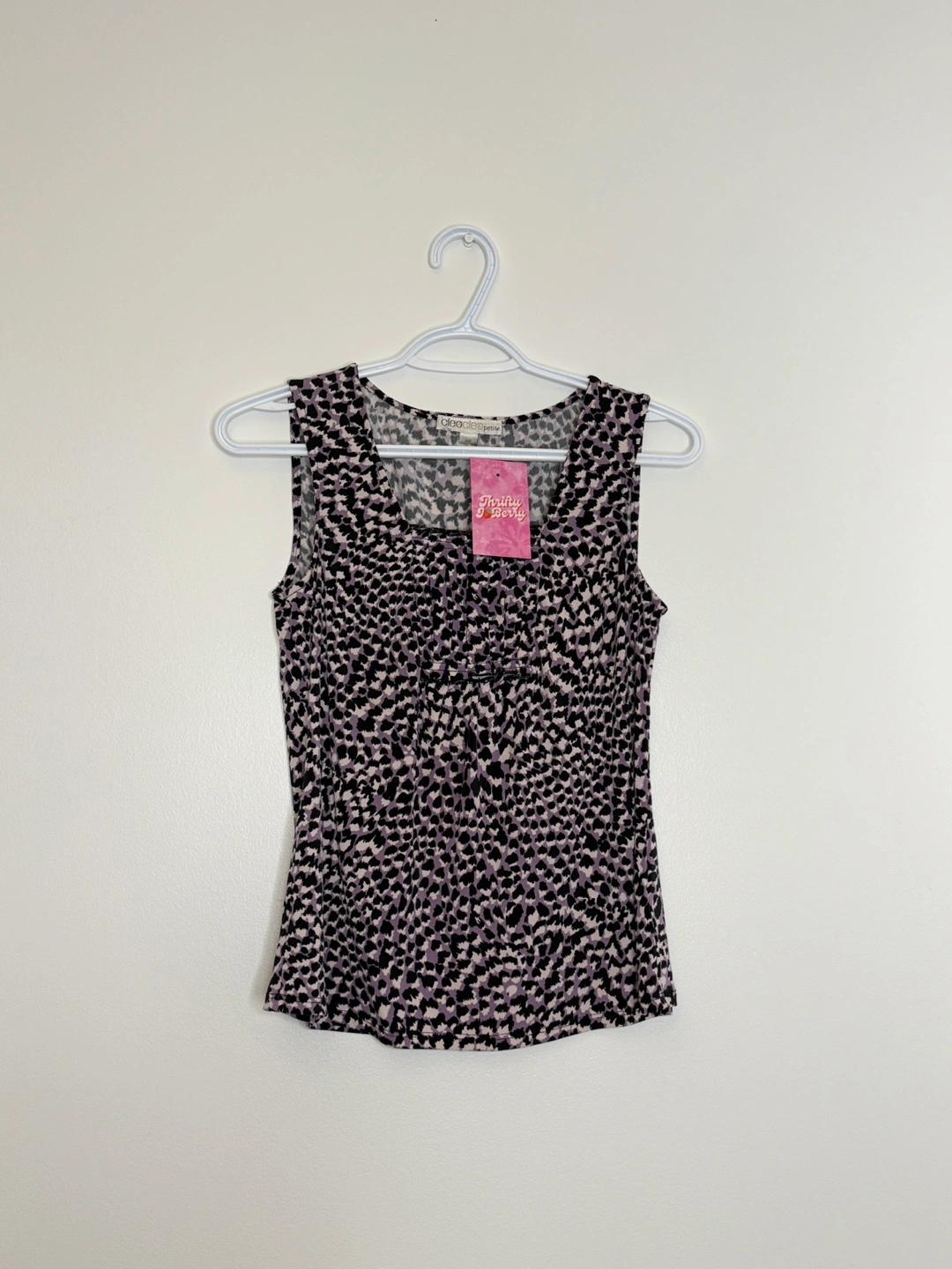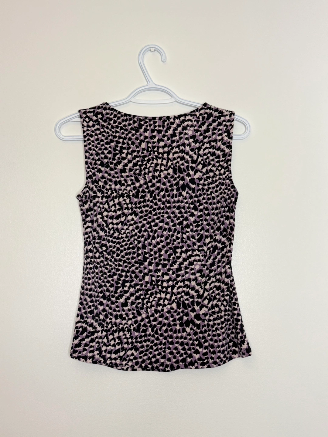 Cleo Black, white and purple Tank Top features a stylish ruched design. Size Small! In great condition !