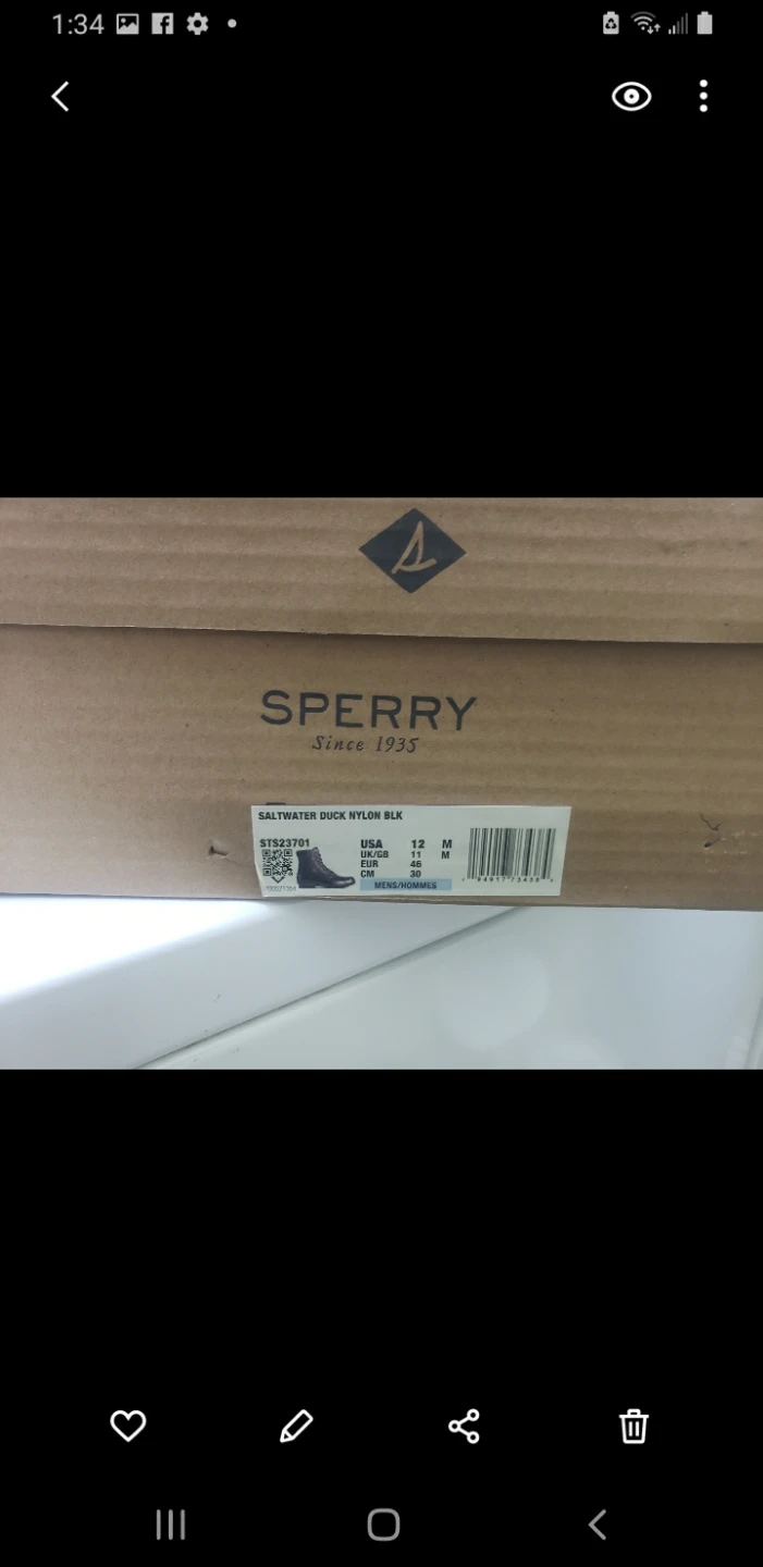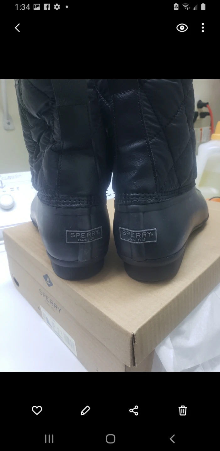 New Sperry Saltwater Duck Nylon boots in black. SIze 12. Waterproof rubber lower with quilted nylon upper. Lace-up front.