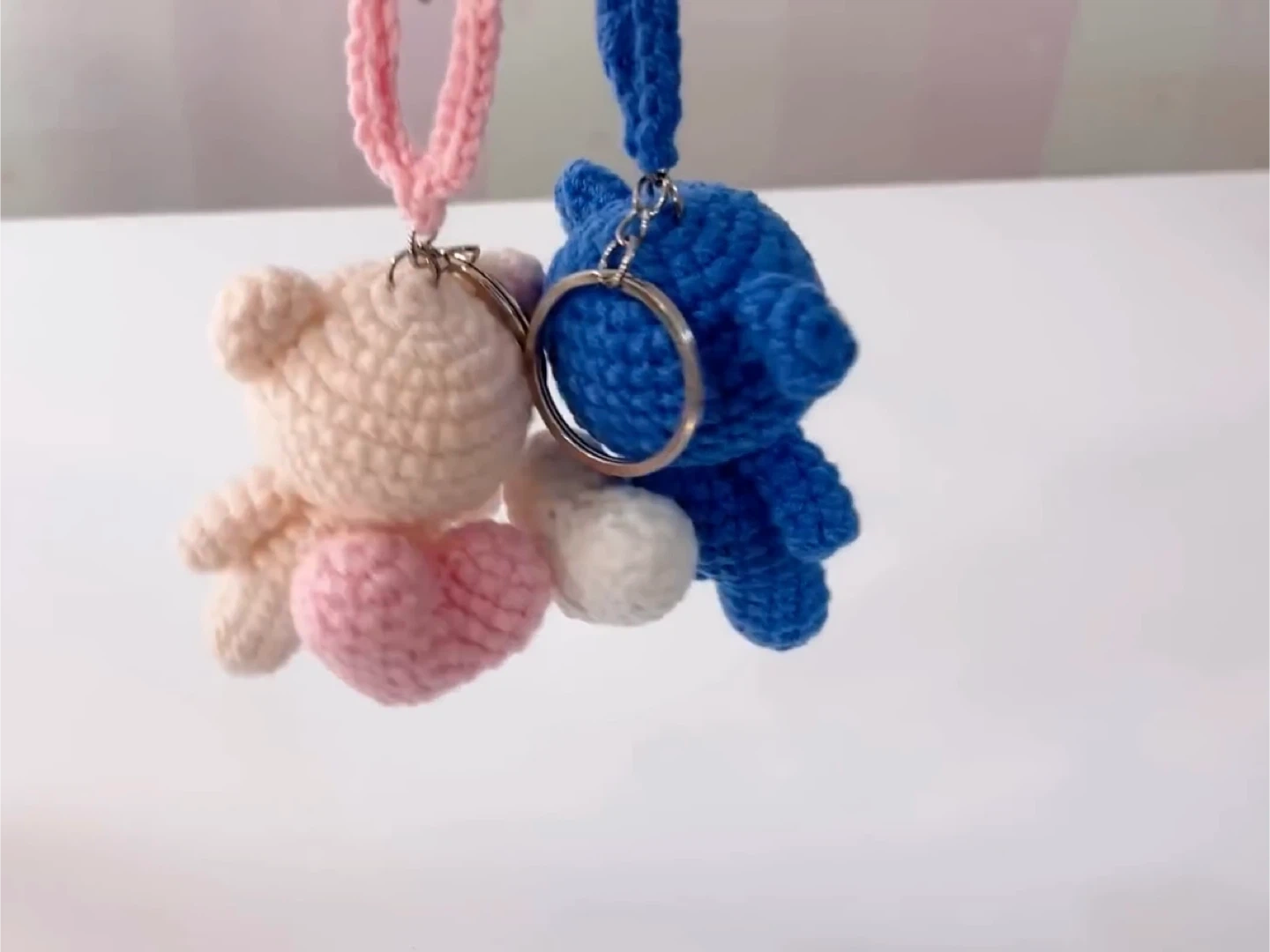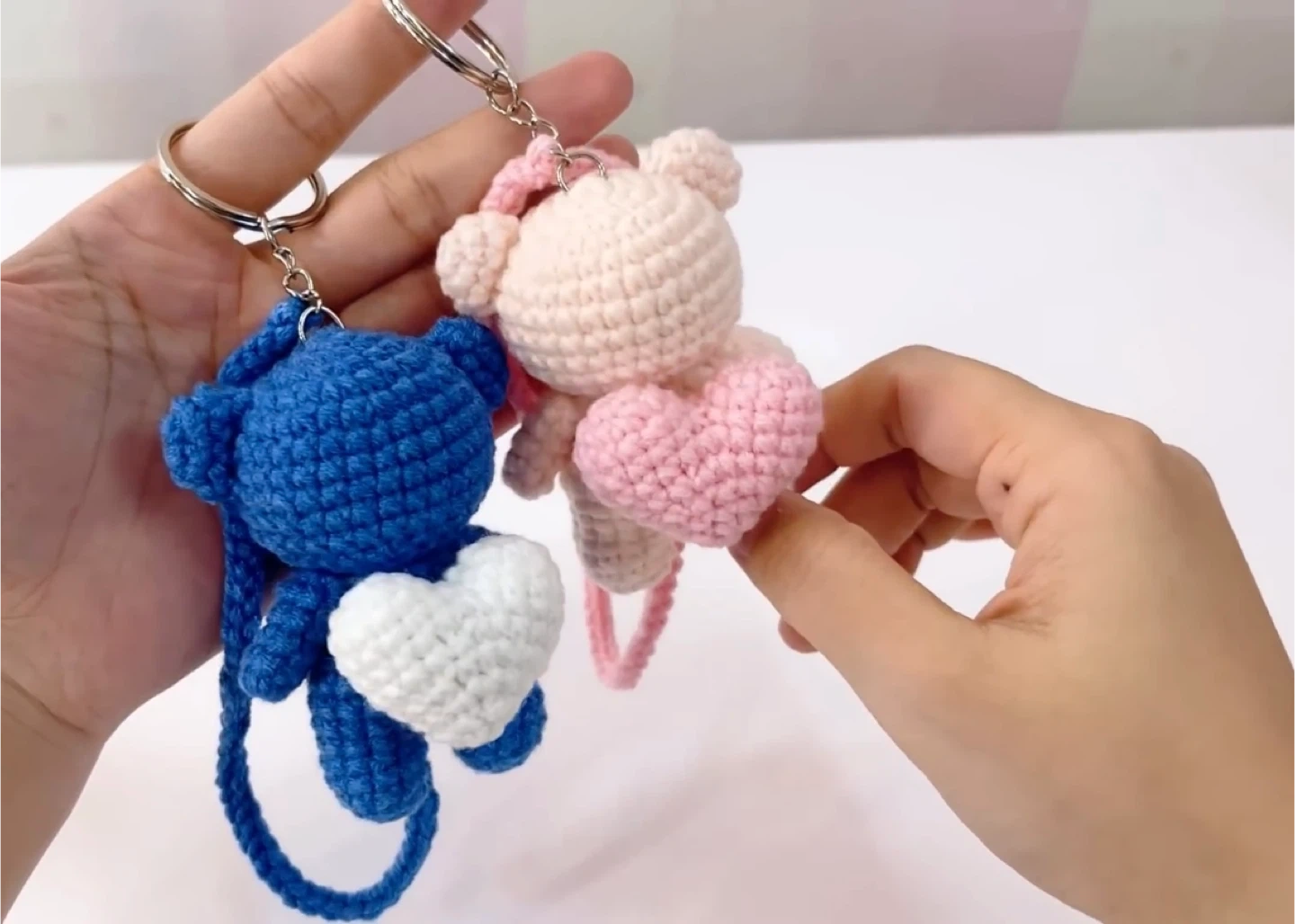 Selling these adorable handmade crochet bear keychains! They each have a cute little heart. Available in blue and pink. Perfect for adding a touch of handmade charm to your keys or bag