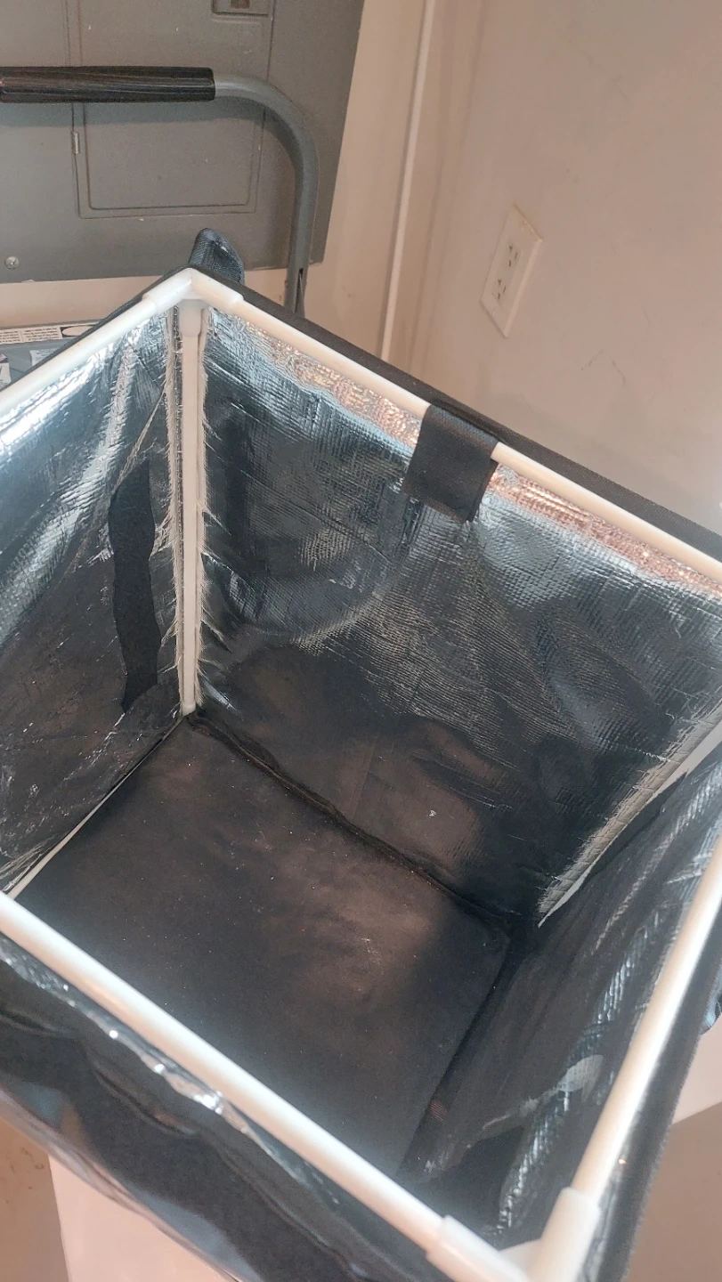 Black insulated backpack for food delivery. It has adjustable shoulder straps for comfort. The interior is lined with reflective material to keep food warm or cold. Exterior is durable nylon.