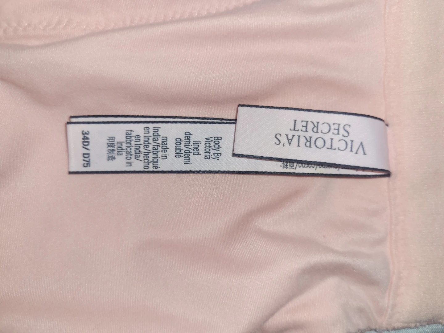 Victoria's Secret pink lined demi bra. It's a size 34D/D75. Made in India. Adjustable straps.