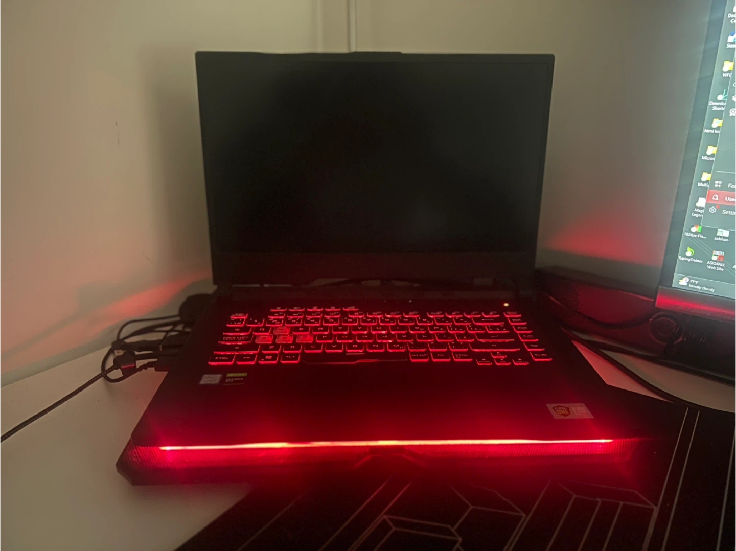 This ASUS ROG laptop is ready for gaming. It features a backlit keyboard for low-light conditions. The powerful graphics card handles demanding games.