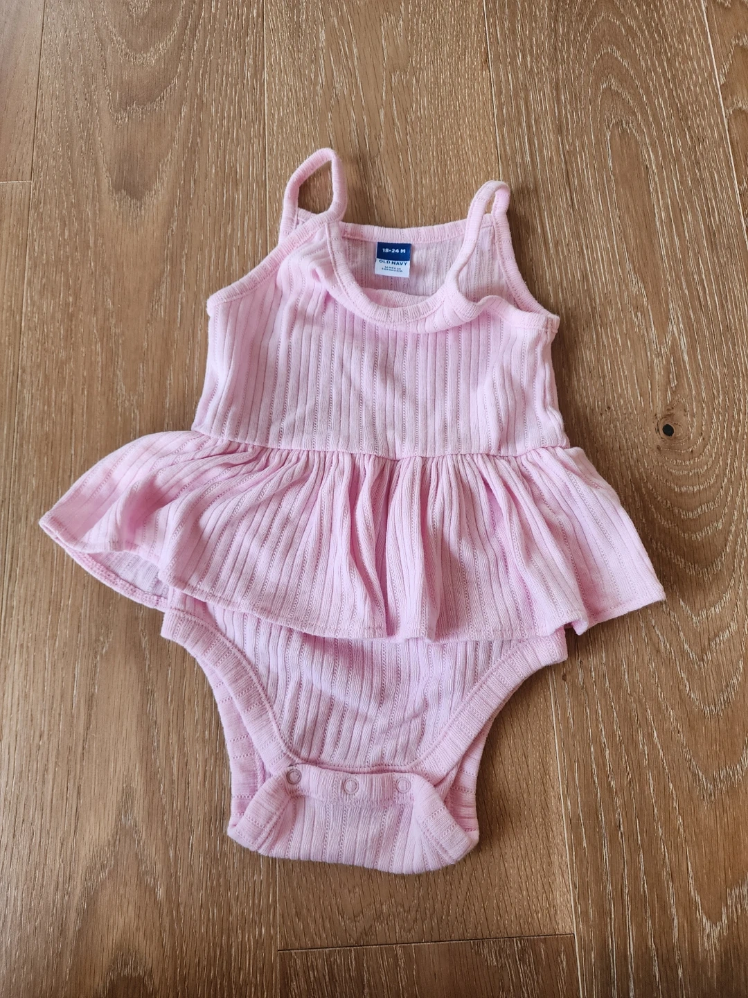 A cute pink dress bodysuit from Old Navy! The size is 18-24 months. It's in great condition and ready for a new home