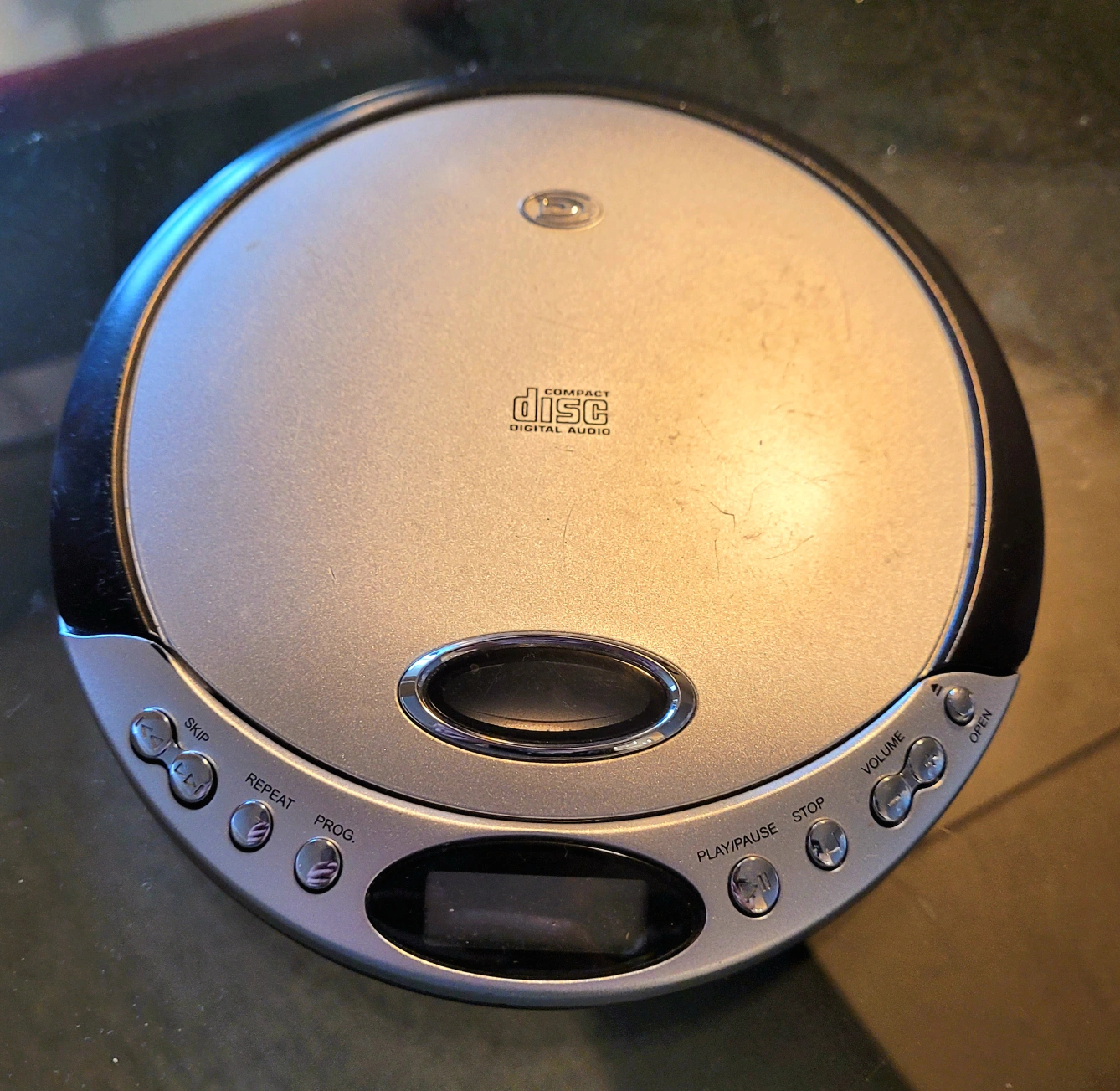 Selling a portable CD player! It's in good condition and ready to play your favourite CDs. It features standard controls like skip, repeat, program, play/pause, and stop. Manufactured in September 2005