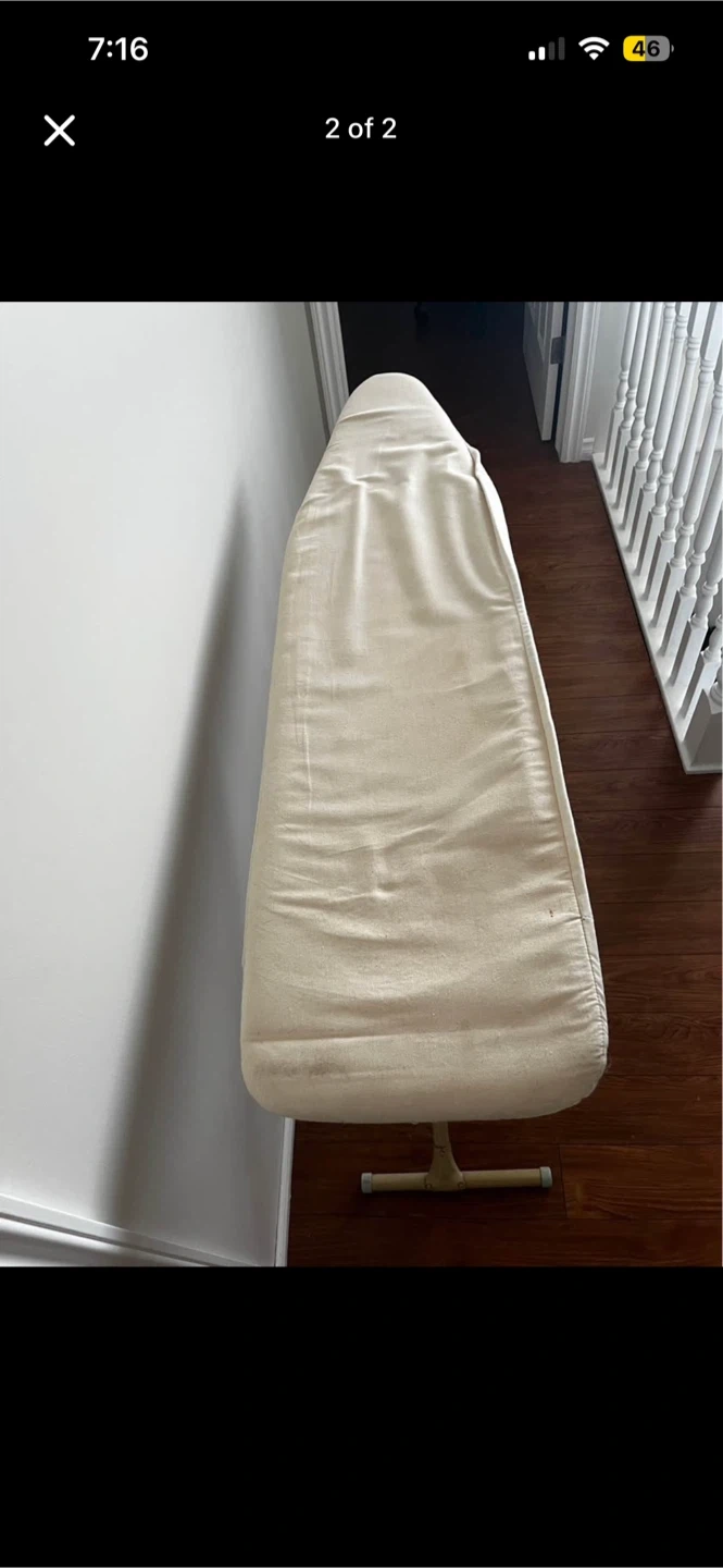 Buy & SellIroning BoardIroning Board$10Standard ironing board with a cream-coloured cover. It's designed with an adjustable metal frame for stability. Easy to set up and put away.WHERE TO MEETCheck LocationView MapSELLERRonThe Hamptons100 reviews0 chats·0 favorites·7 viewsSEND CHAT TO SELLERHi Ron! I’m interested in your listing.Hi Ron! I’m interested in your listing.Get the Karrot app to chatSign In to chat