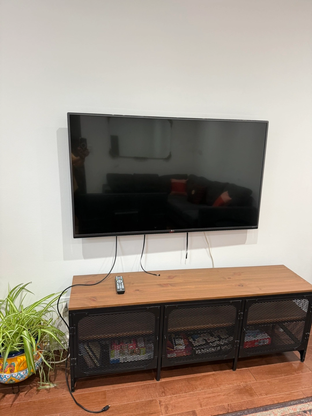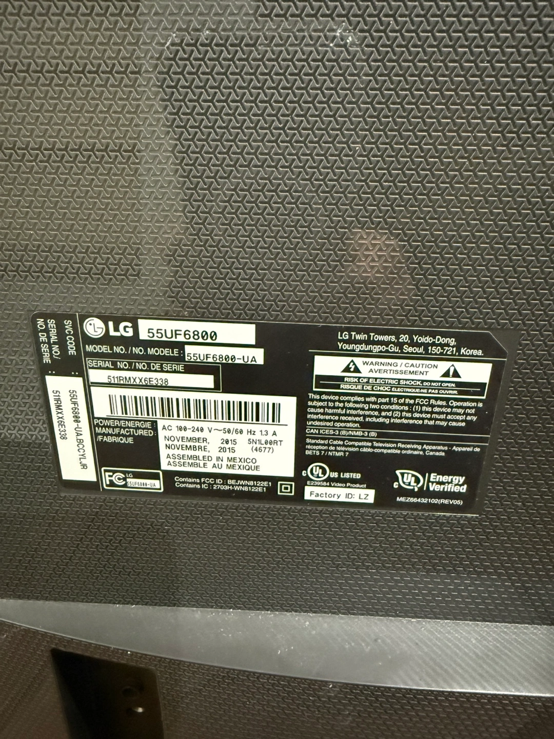 55-inch LG 4K Ultra HD Smart TV. Multiple HDMI and USB ports. Wall-mounted. Includes remote. It’s in excellent working condition conditions !