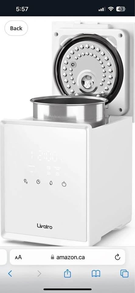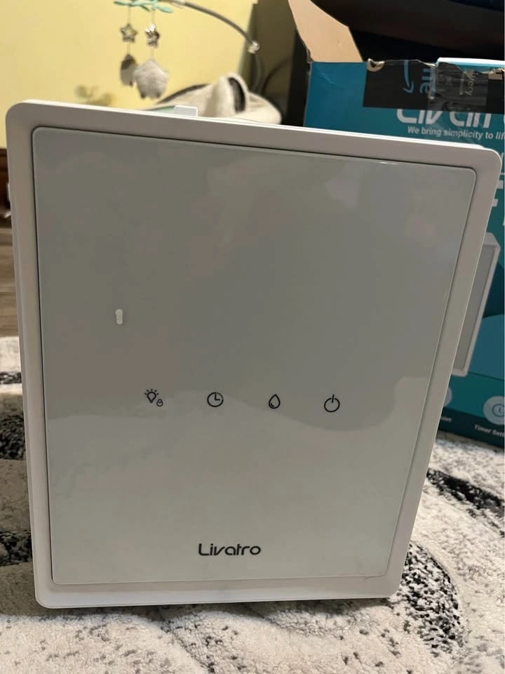 Brand new Livatro humidifier in white. Features a stainless steel water tank for healthy and clean steam mist. It has an auto-clean function and auto shut-off. Capacity is 3 Liters, covering up to 300 square inches. This warm mist humidifier heats water to a boiling point for pure steam, ideal for dry skin and congestion. The stainless steel tank is easy to clean and dishwasher safe. Safety features include auto-off for low water, child lock, and screen lock. It has adjustable humidity settings (High, Low, Sleep modes) and offers 6-12 hours of continuous mist. The auto-clean mode helps with limescale removal. Let me know if you're interested!