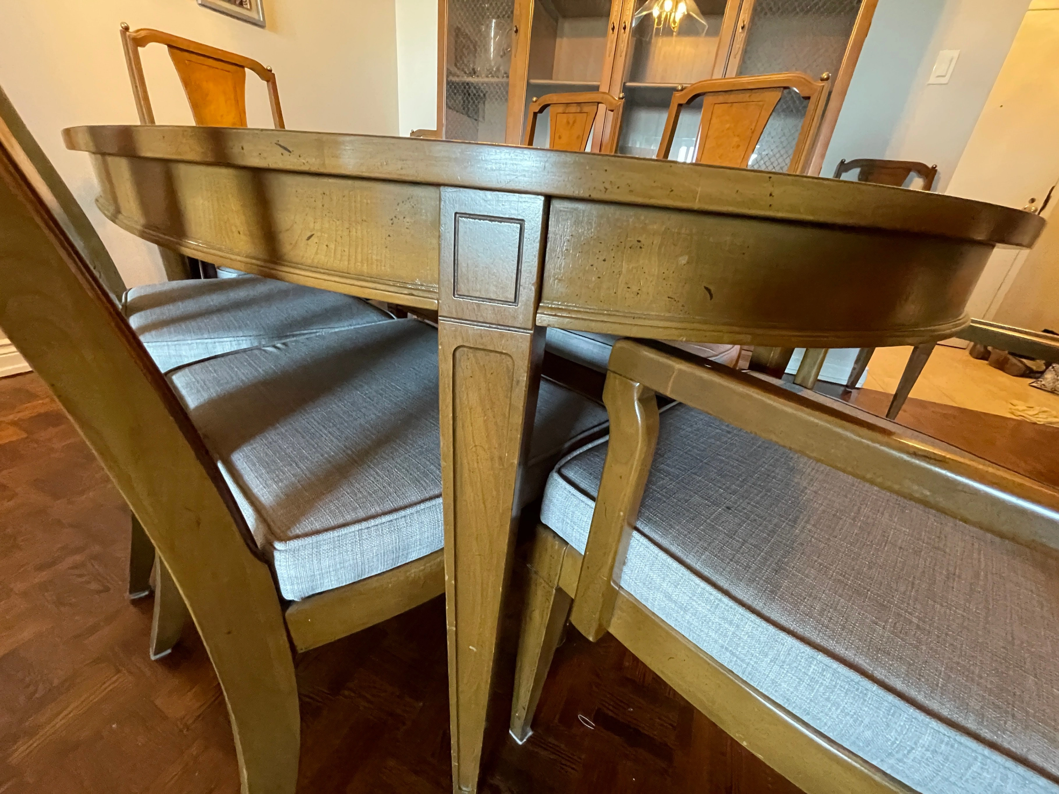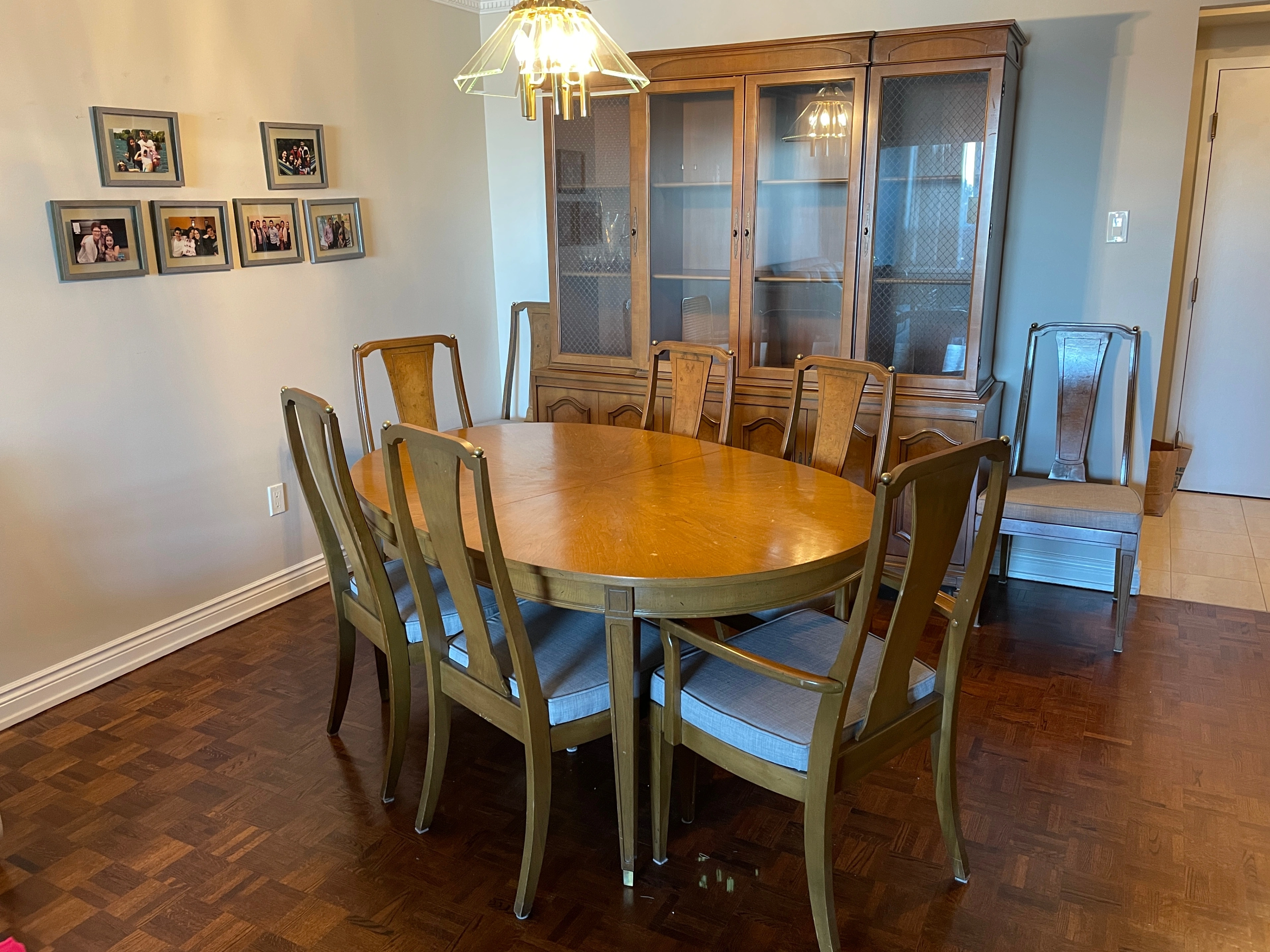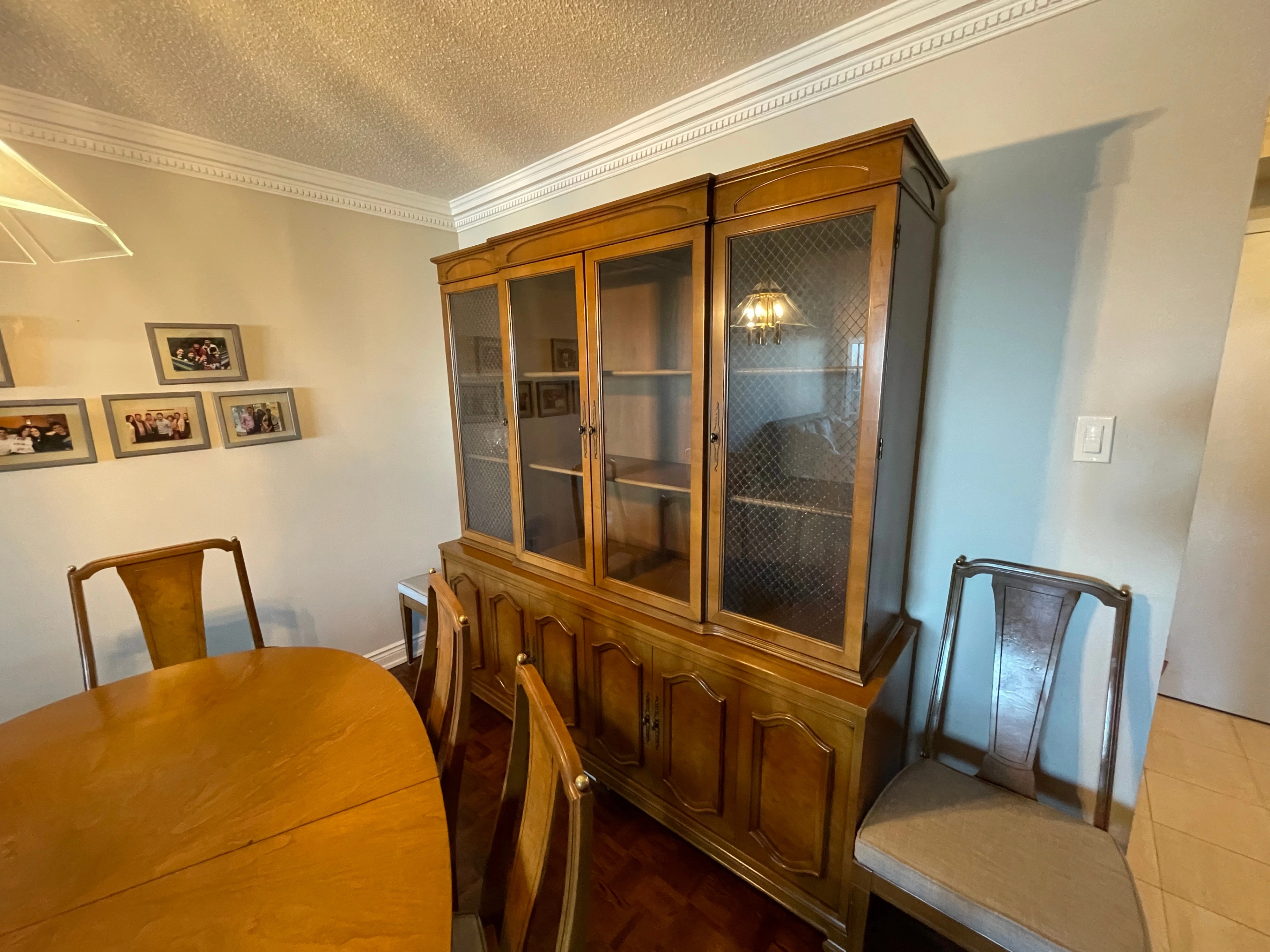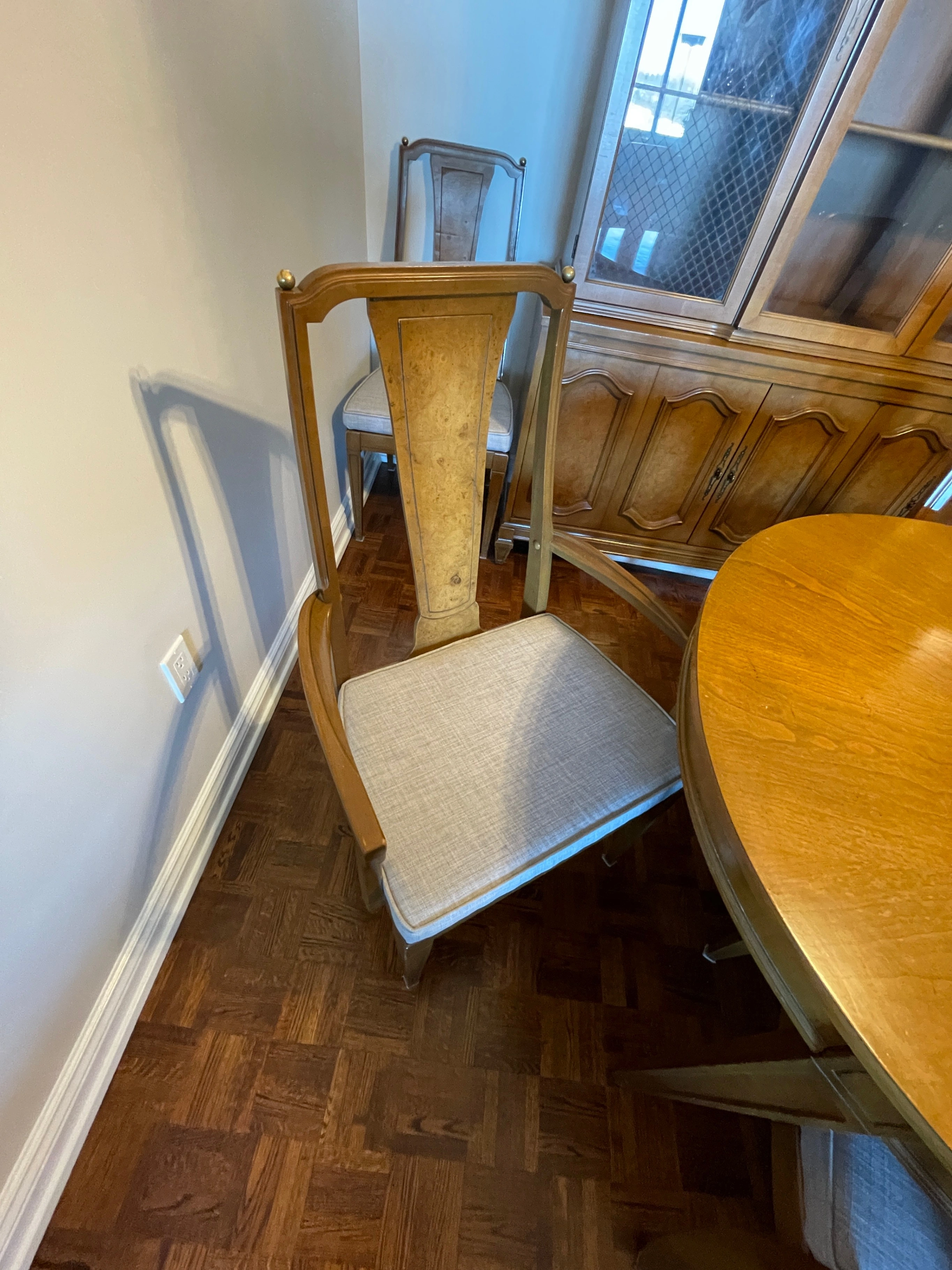 Beautiful matching solid wood dining room set featuring classic craftsmanship and timeless design. This is a complete, cohesive set — not pieced together — ideal for a proper dining room.