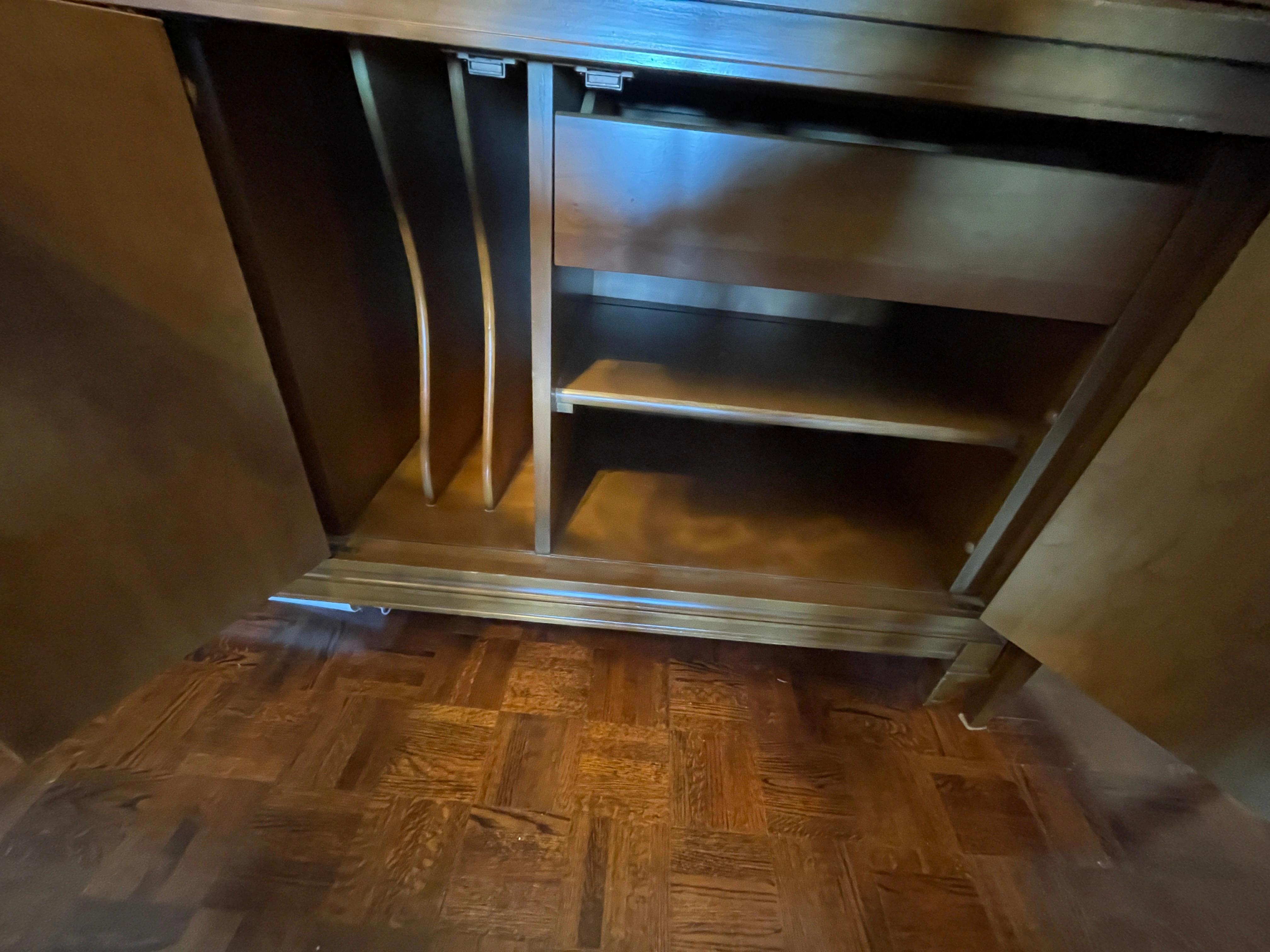 • Lower buffet/storage cabinet with shelves + drawer